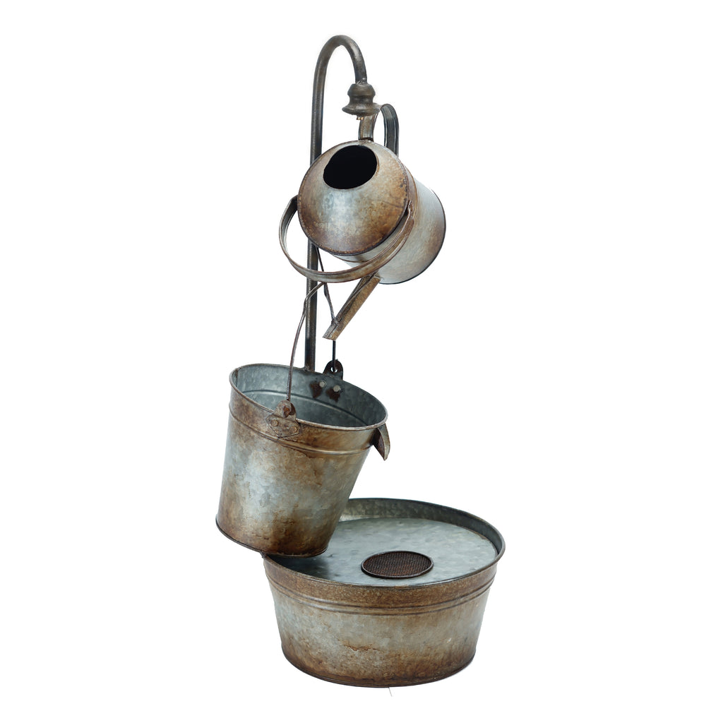 Metal 27.25" Watering Can to Buckets Fountain