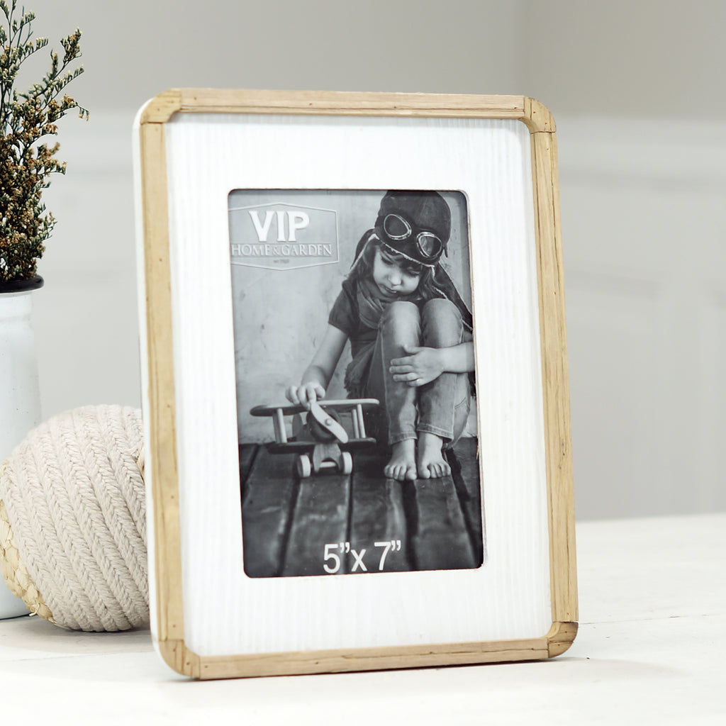 9.5" Wood 5X7 Floating Photo Frame Blk/Wht