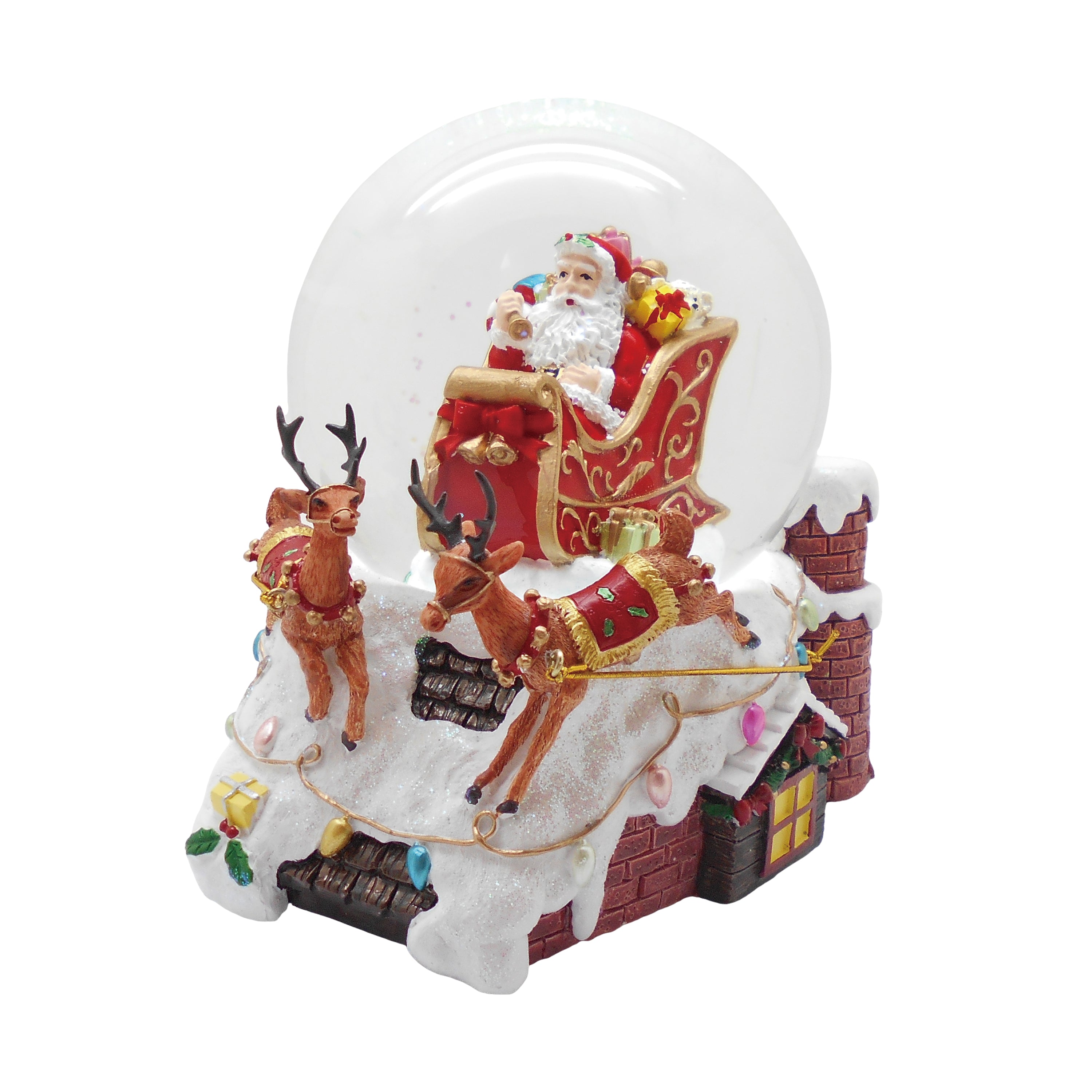 120MM CHRISTMAS SANTA WITH REINDEER MUSIC WATER GLOBE