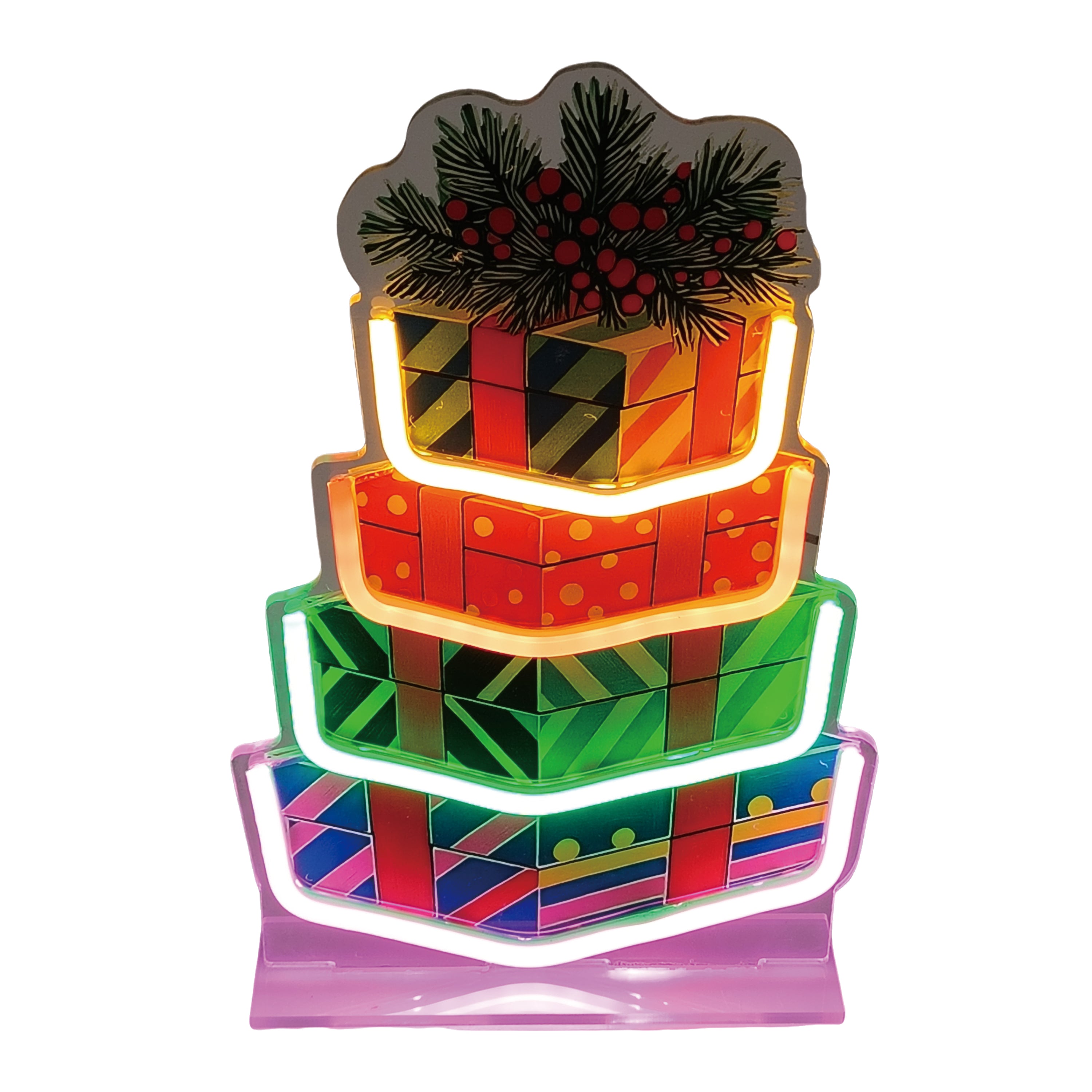 13" LED Acrylic Christmas stacked Giftboxes neon light home decor with ETL adapter