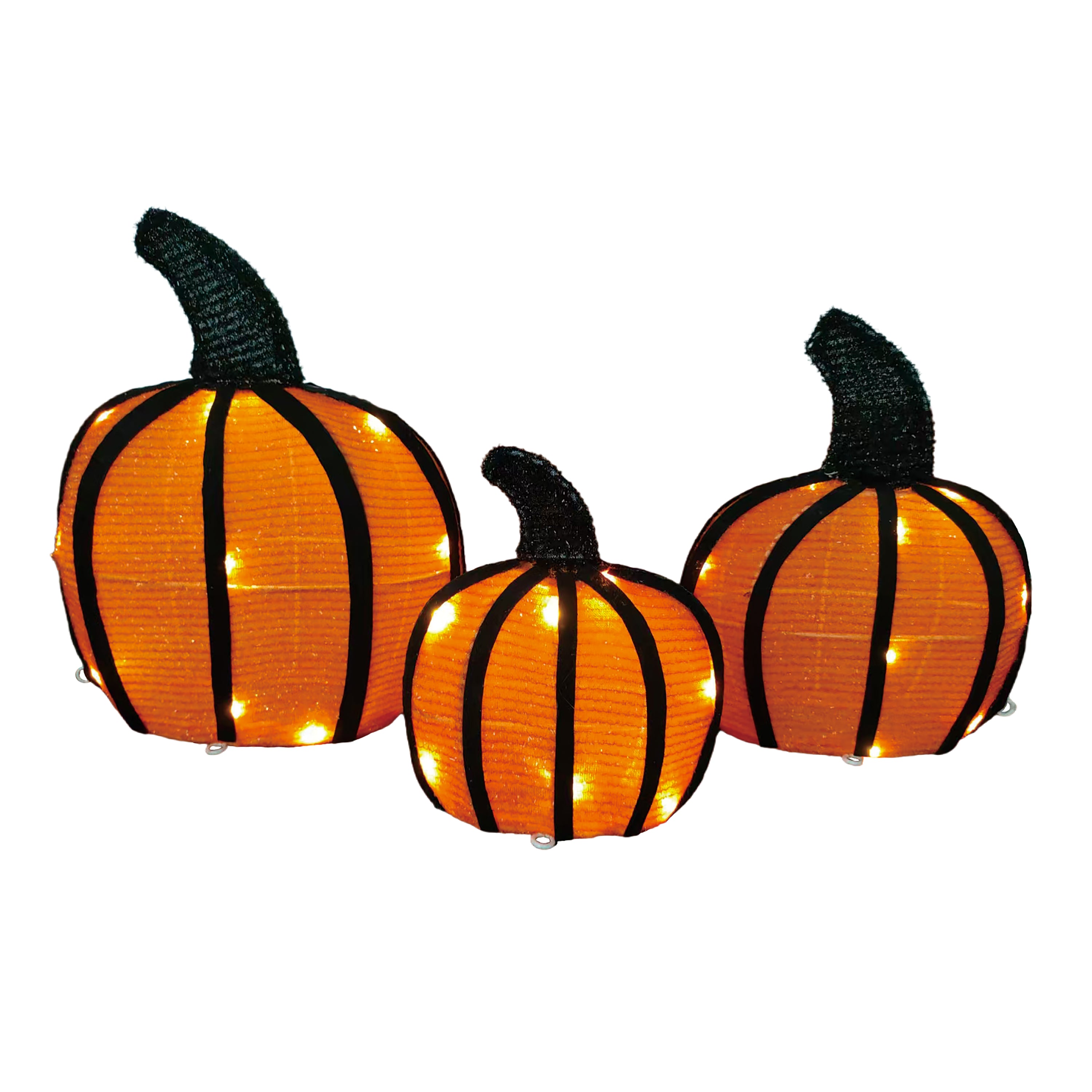 13" LED Pumpkin Set of 3 Metal Frame Lighted Decor