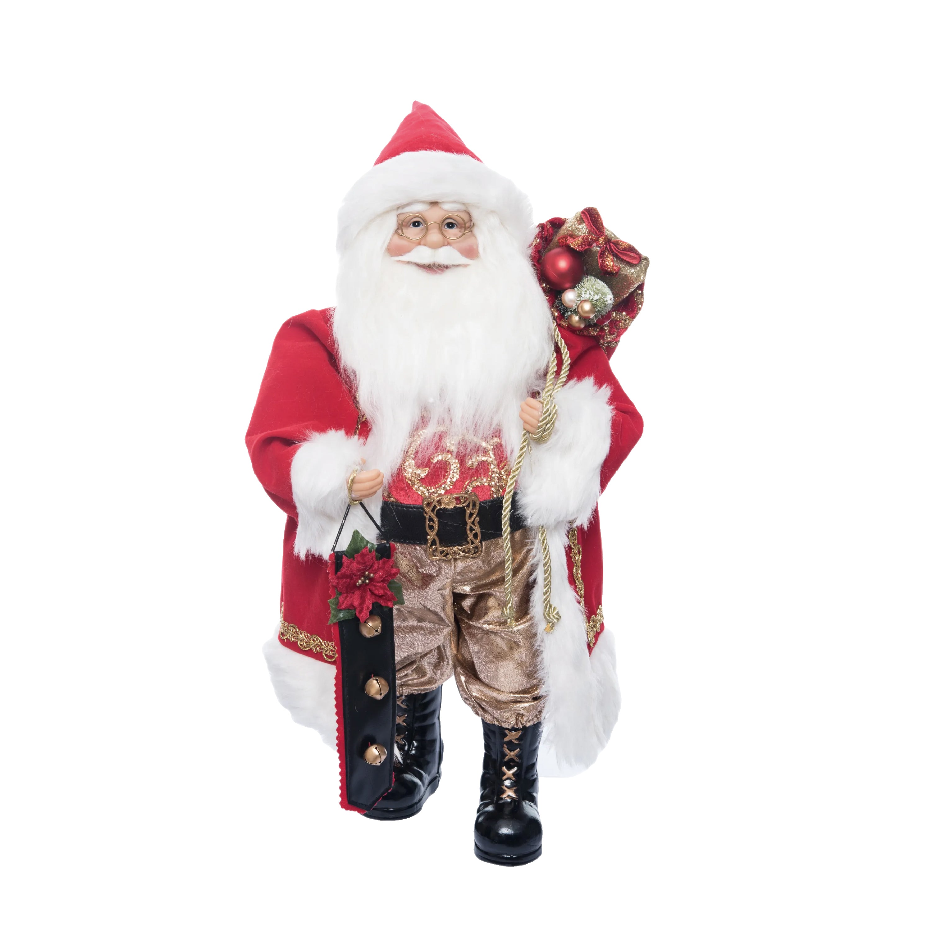 18" Red And Gold Santa With Bell Hanging
