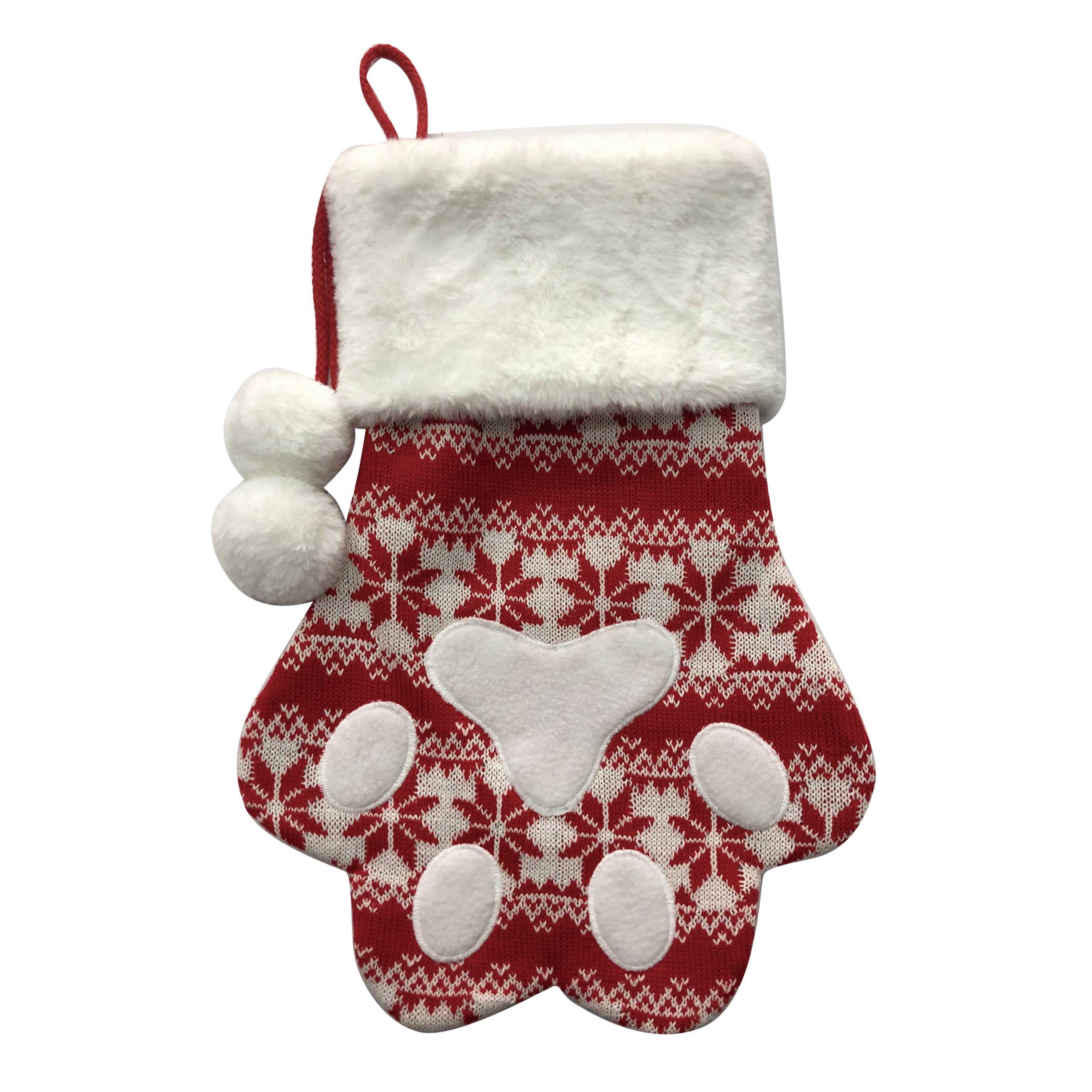 20" Red/White Paw Stocking