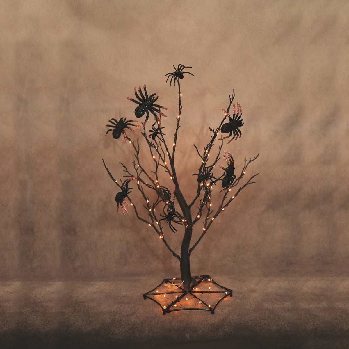 24" LED Spider Tree w/ web base and spiders on the branches. 93 orange lights.