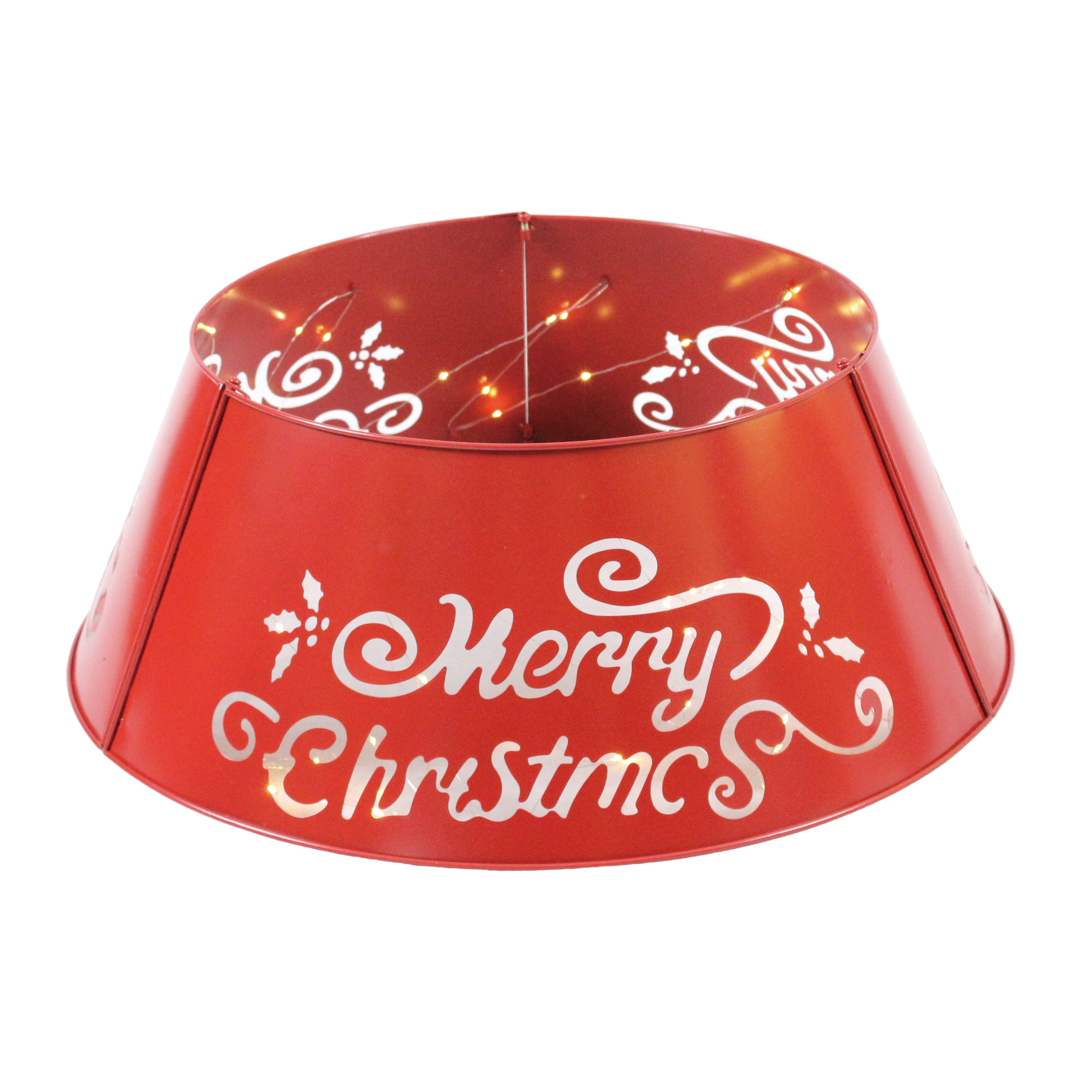 26" Large Embossed LED Merry Christmas metal tree collar w/24 string lights(6hrs ON/18hrs OFF)