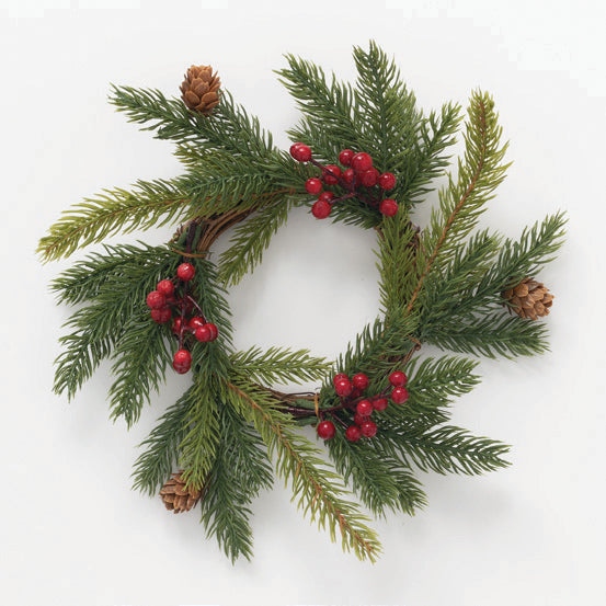3.5" X'MAS WHITE/SPRUCE/BERRY ACCENT RING (MATERIAL BREAKDOWN: 60% PLASTIC, 25% GRAPEVINE, 10% STYROFOAM & 5% IRON WIRE)