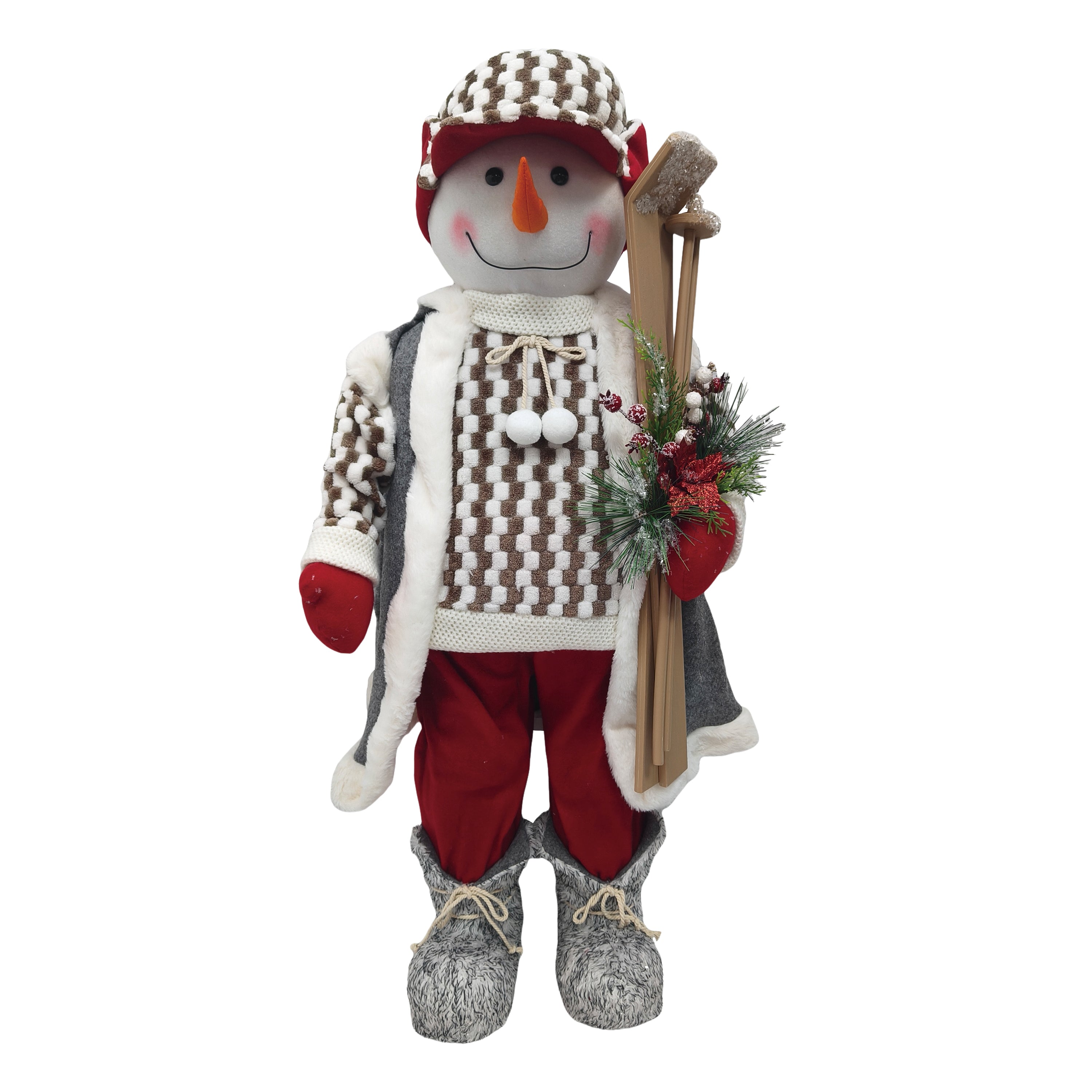 36" STANDING SNOWMAN IN RED GREEN HOLDING SKIS
