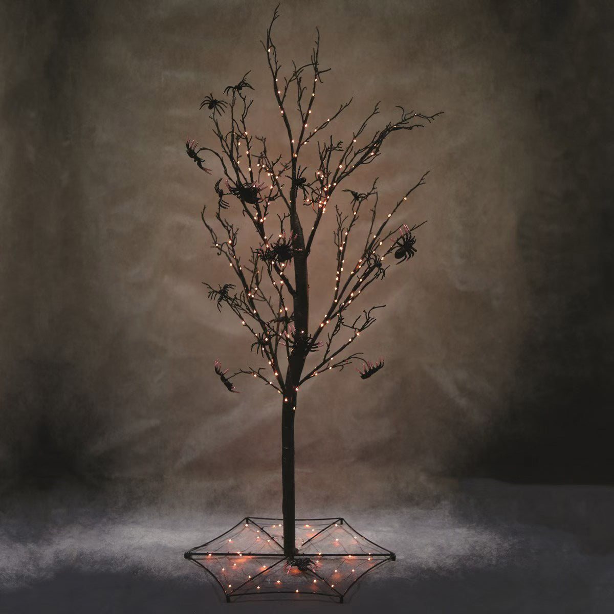 38" LED Spider Tree w/ web base and spiders on the branches.213 LED orange lights & flash bulbs