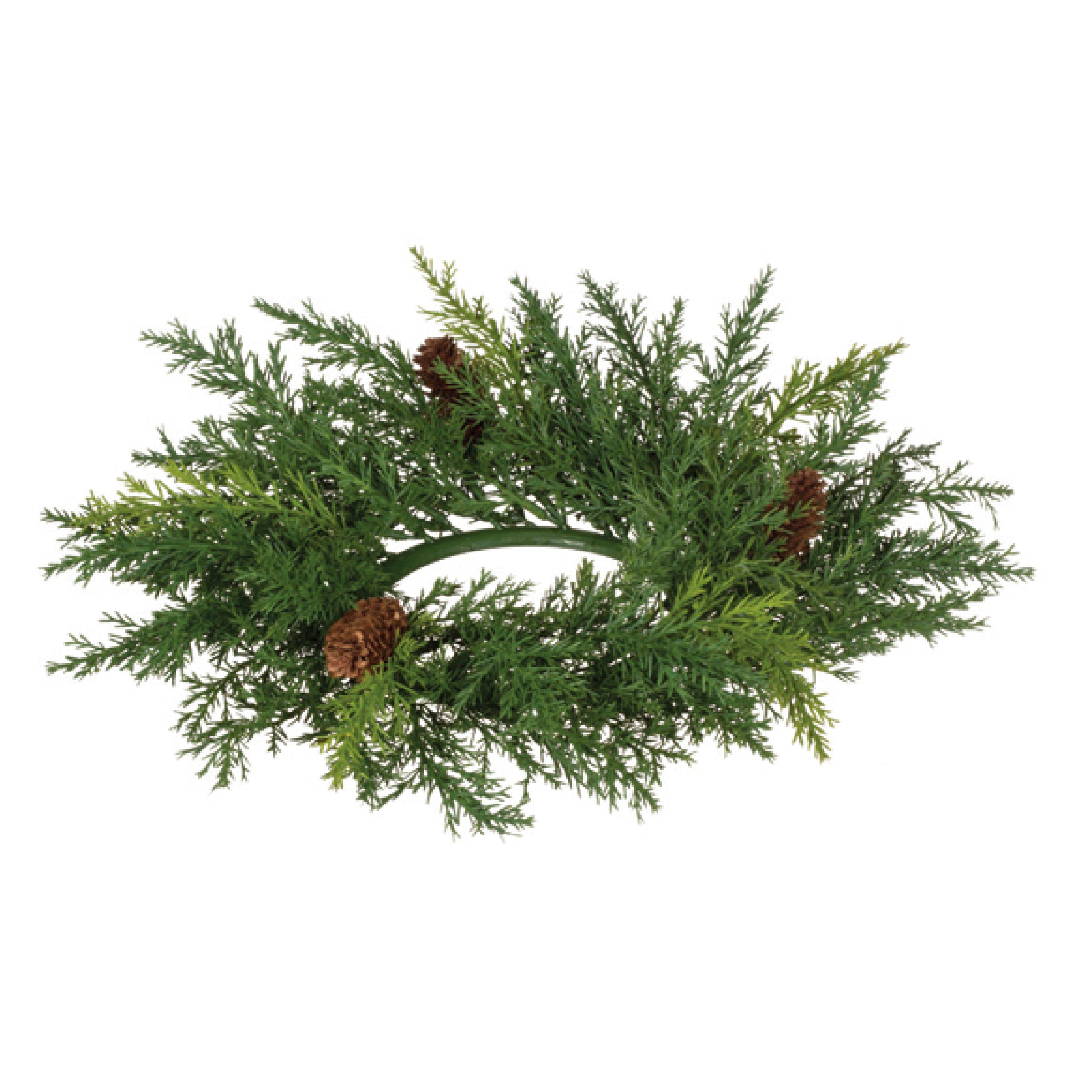 4.25" X'MAS ARBORVITAE ACCENT RING (MATERIAL BREAKDOWN: 80% PLASTIC, 15% PINE CONE, 5% IRON WIRE)