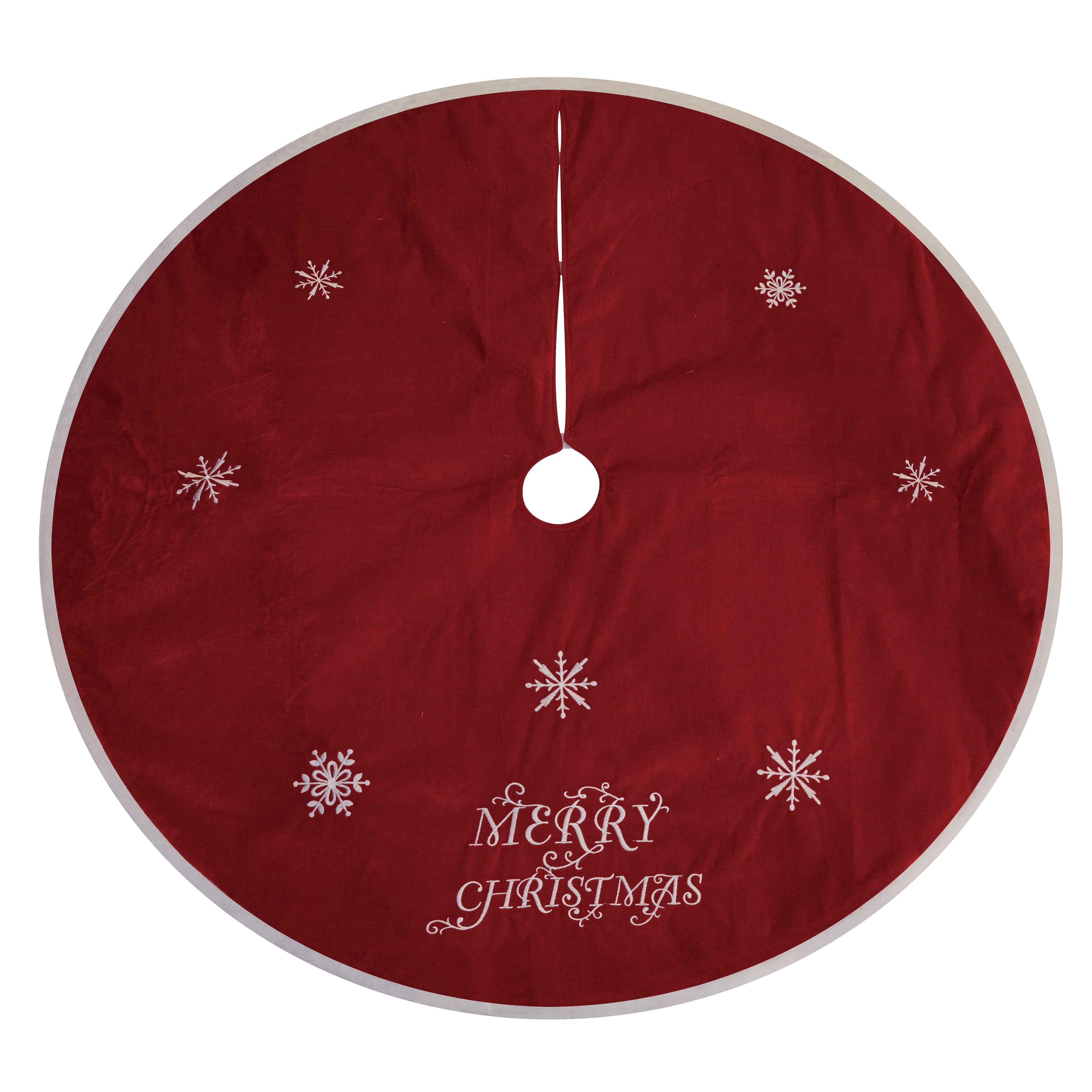 48" Red Merry Christmas Embroidered Tree Skirt