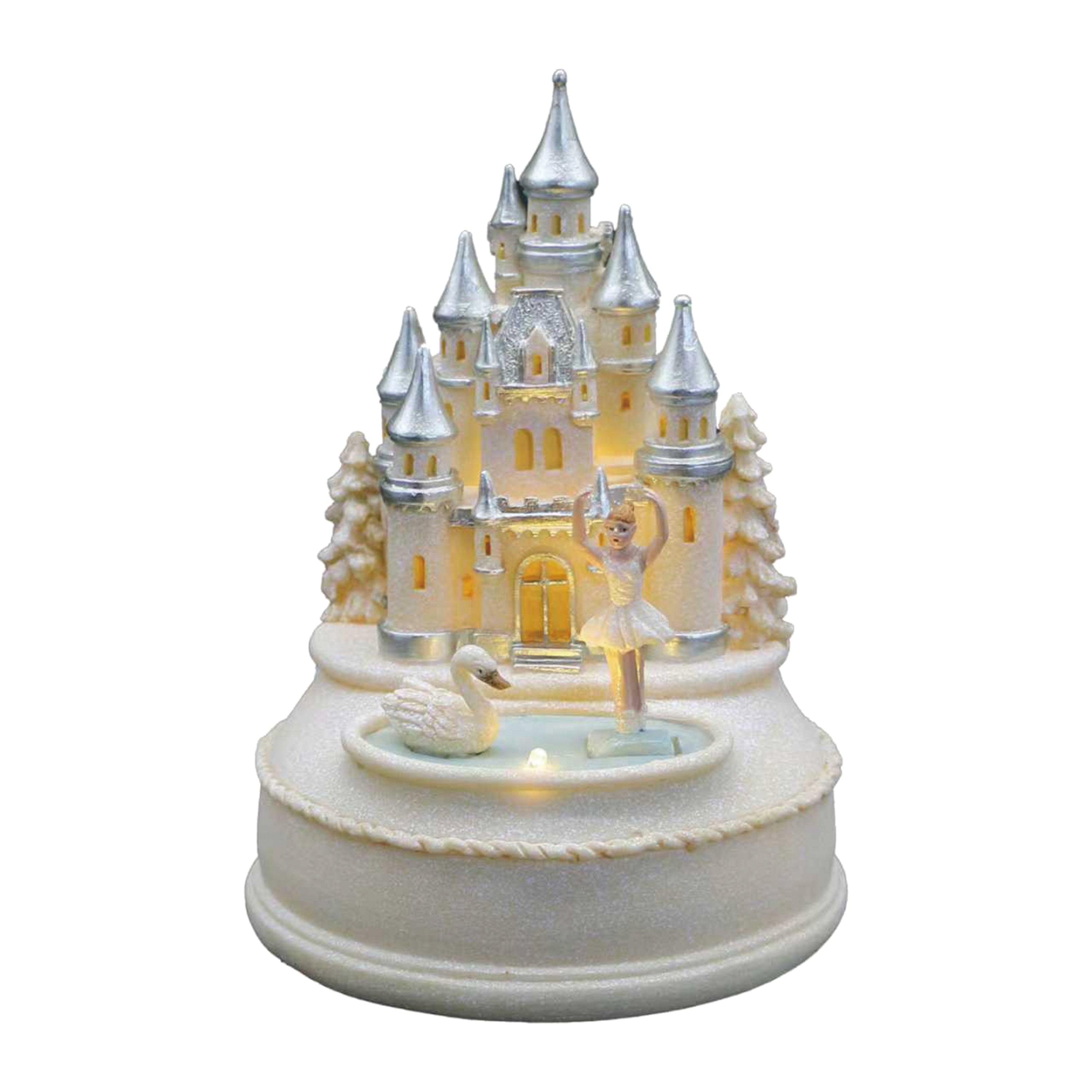 6" Castle with Led Light and Ballerinas and Little Swans.3xAA Battery Operated