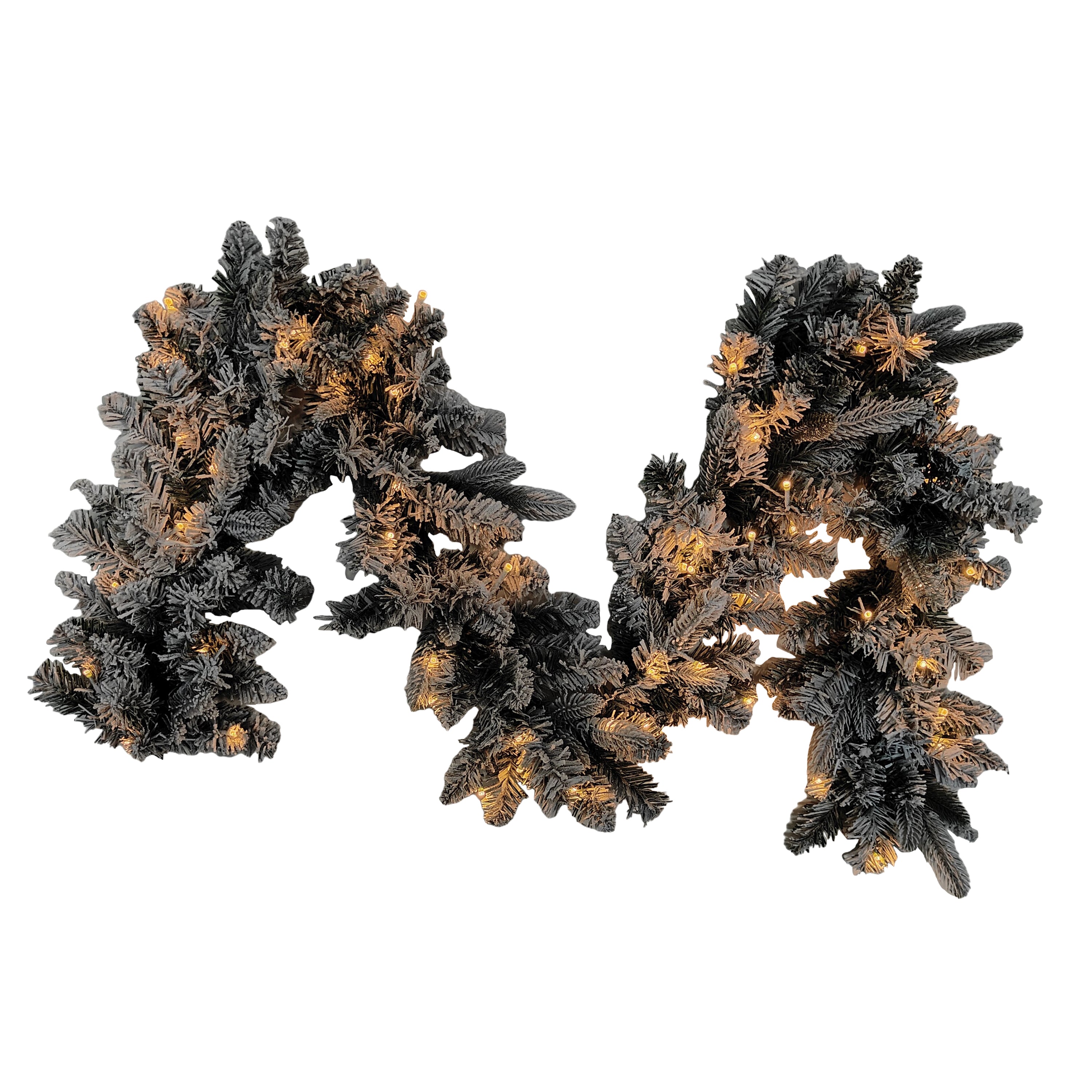6' Flocked garland,PE&PVC material with 50 warm white LED lights with waterproof batterybox(8 functions)156 tips, 30cm width