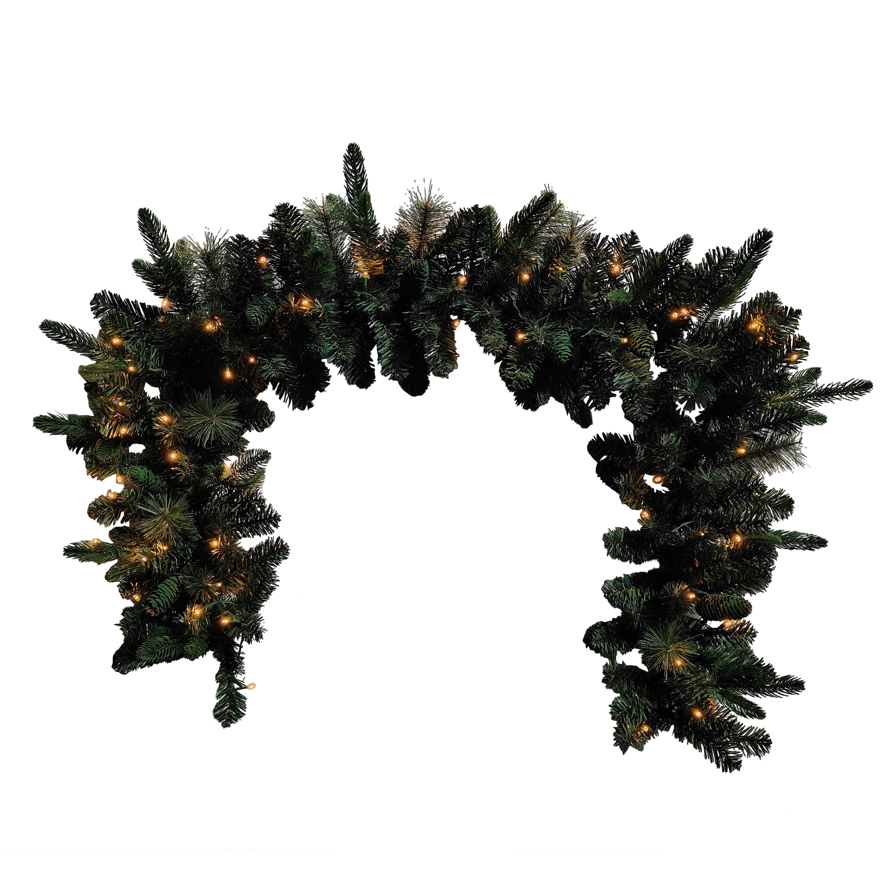 6'PE&Pine needle garland with PVC material 50 warm white LED lights with waterproof batterybox(8 functions)150 tips, 30cm width