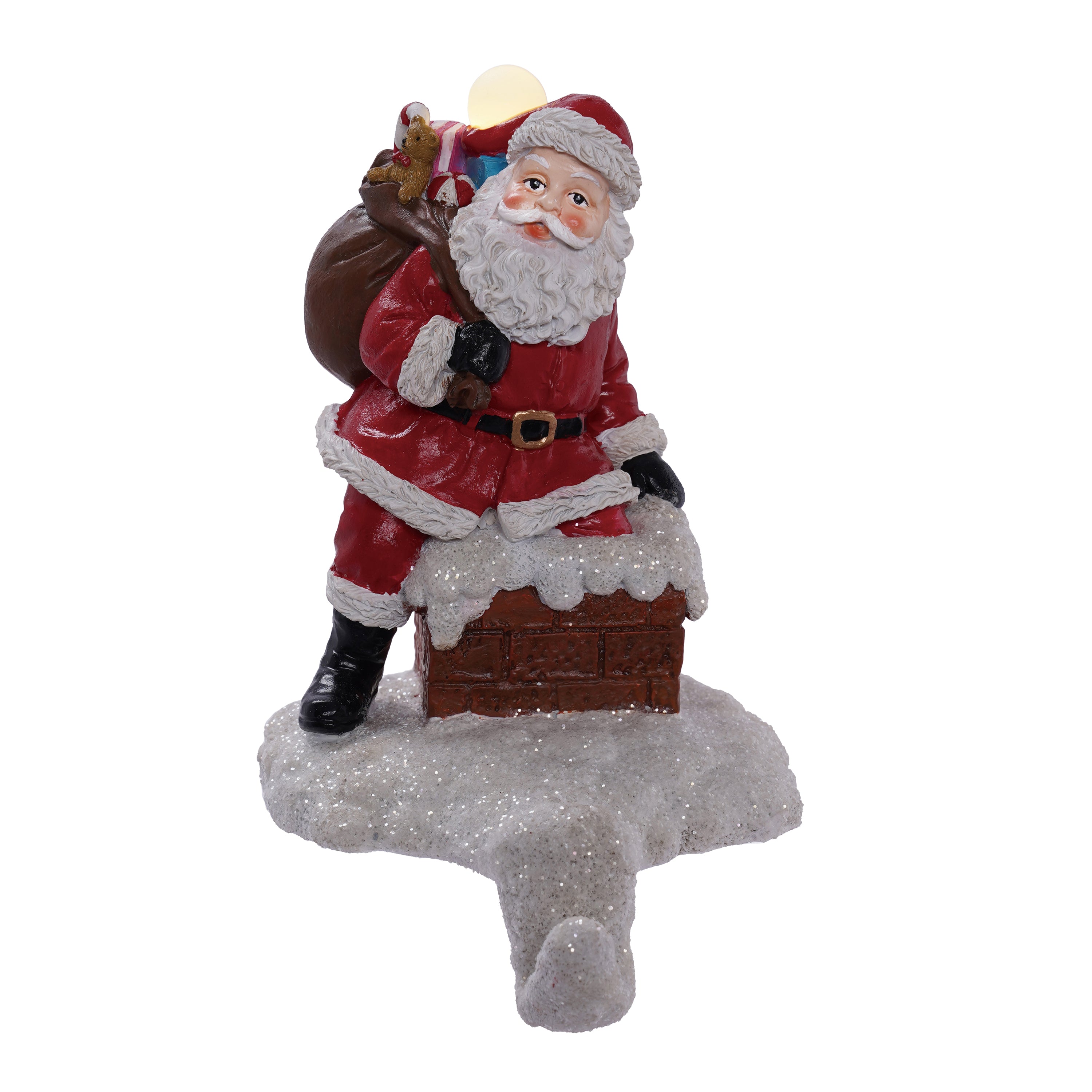 7" Resin LED Santa in Chimney Stocking Holder