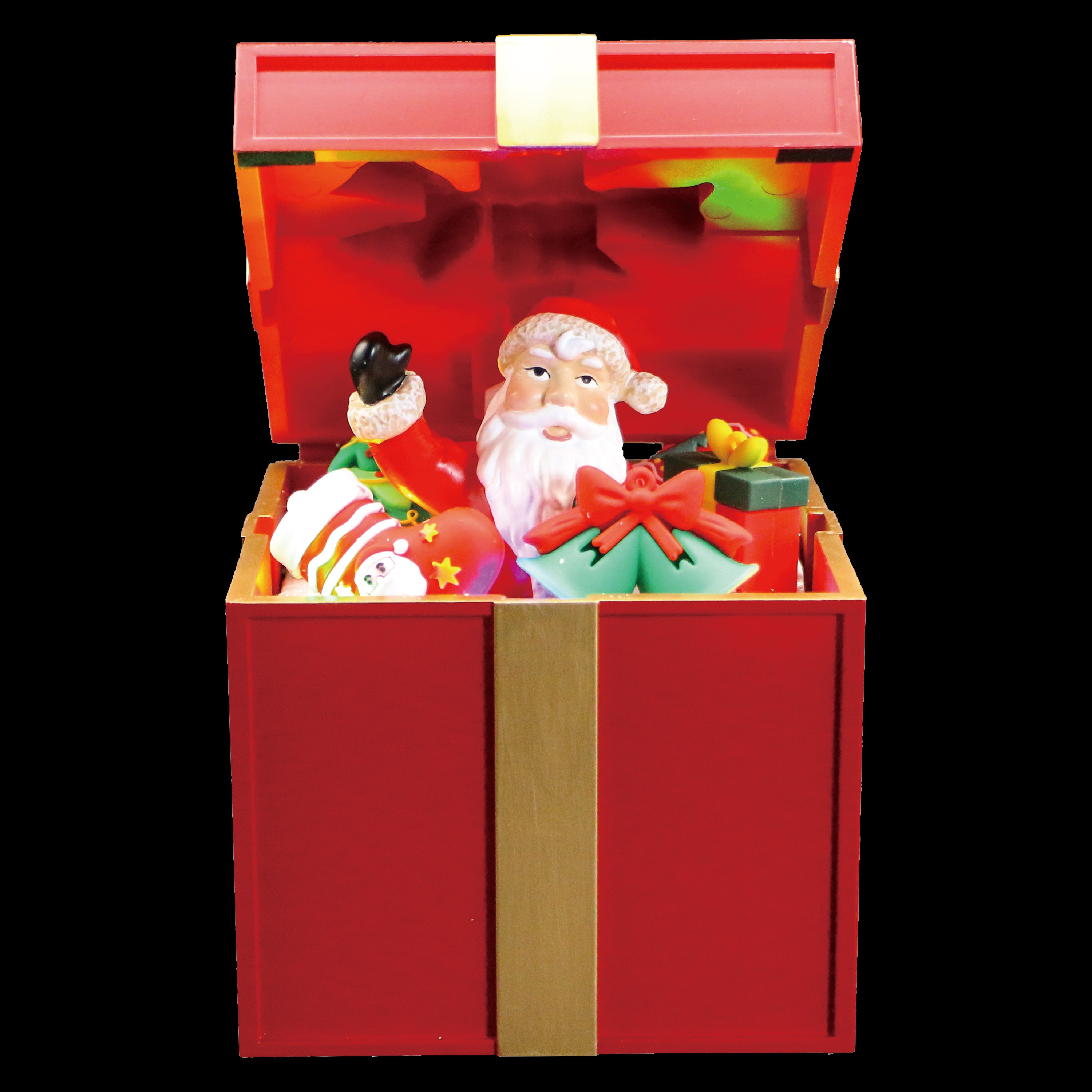 8" Red Gift Box with Led light and Santa Moving Function.3xAA Battery Operated