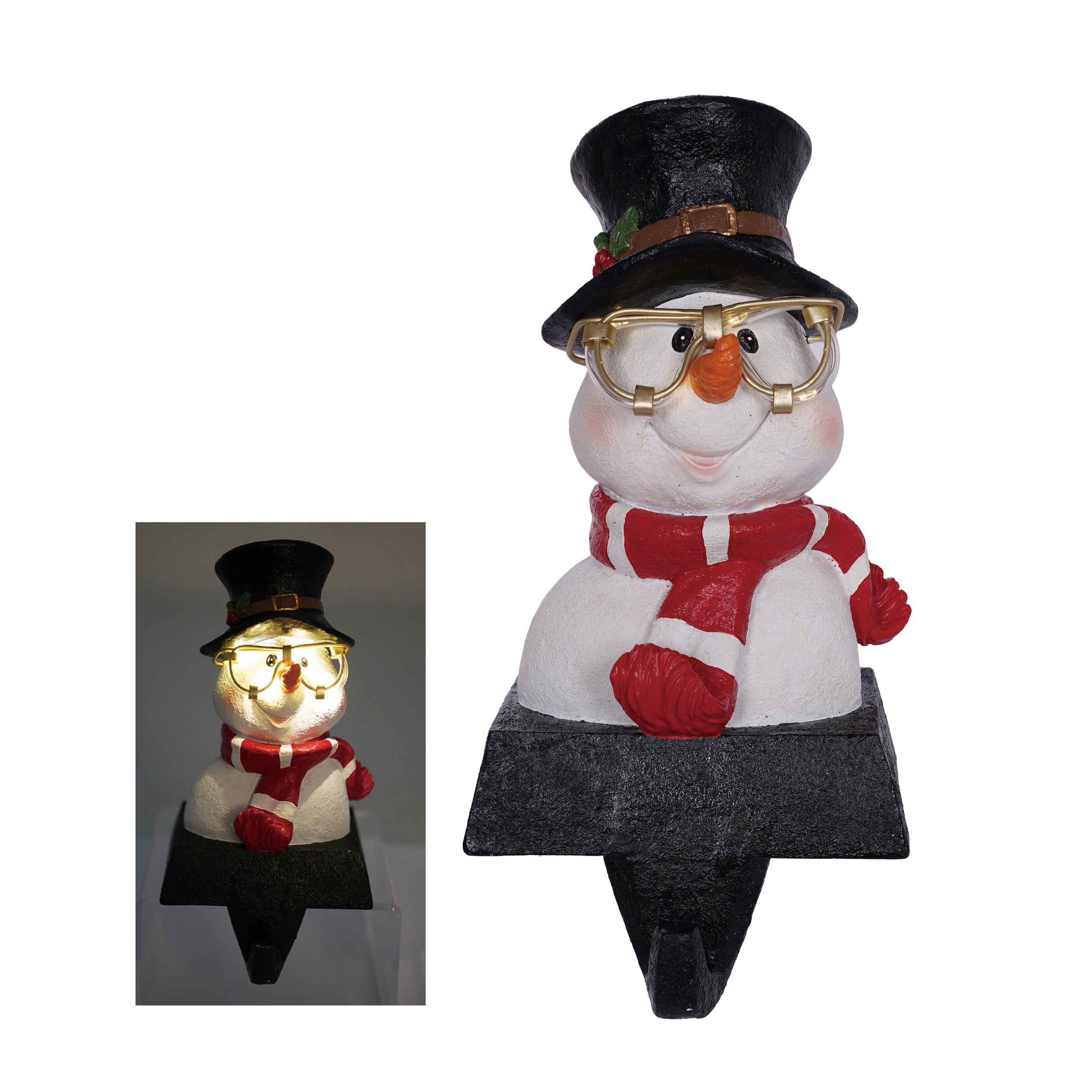 9.65" Resin Snowman Stocking Holder w/ LED GLASSES