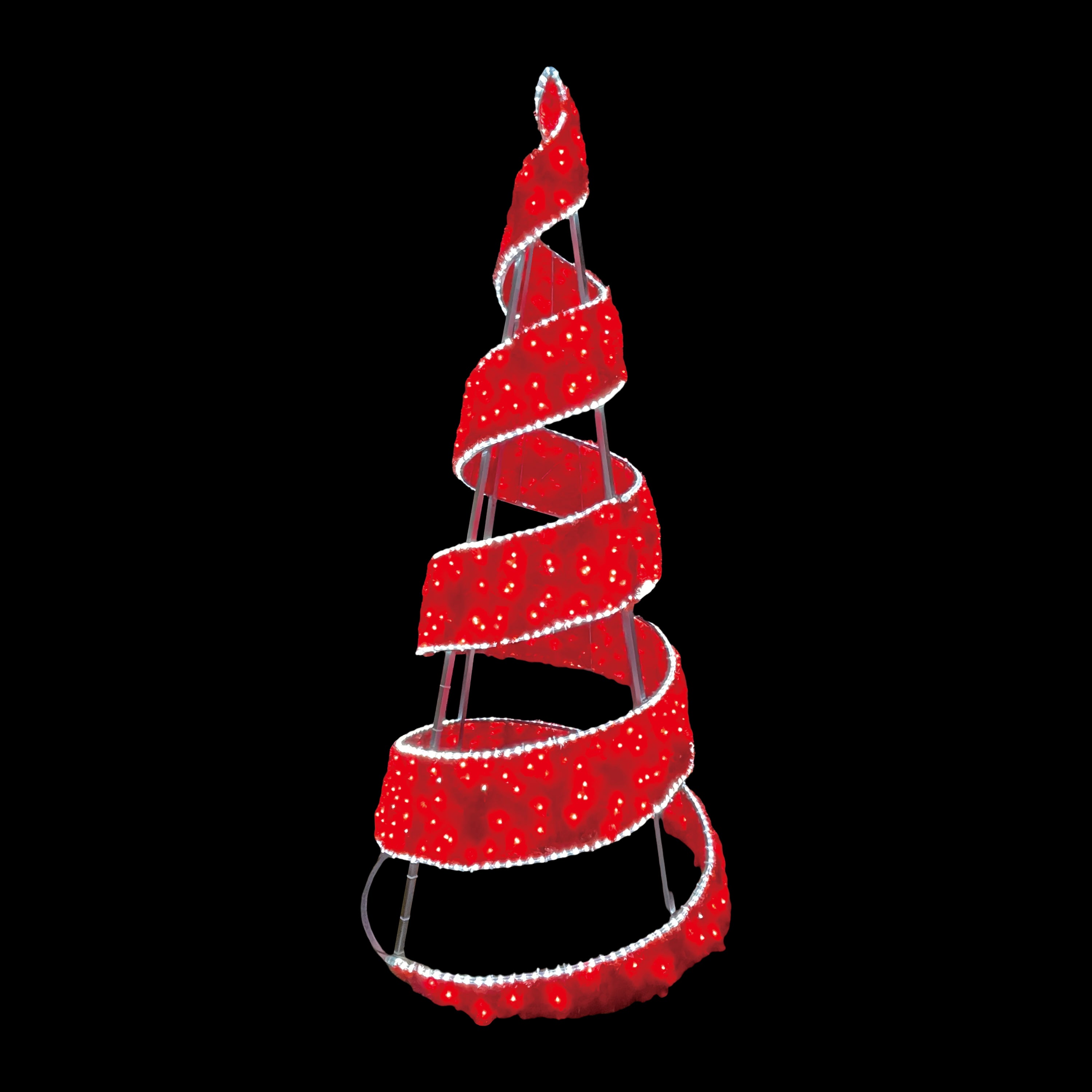 9' Red LED 3D Spiral Tree, alu frame, silver painting, 496 red led string light w/ rope light and flash led