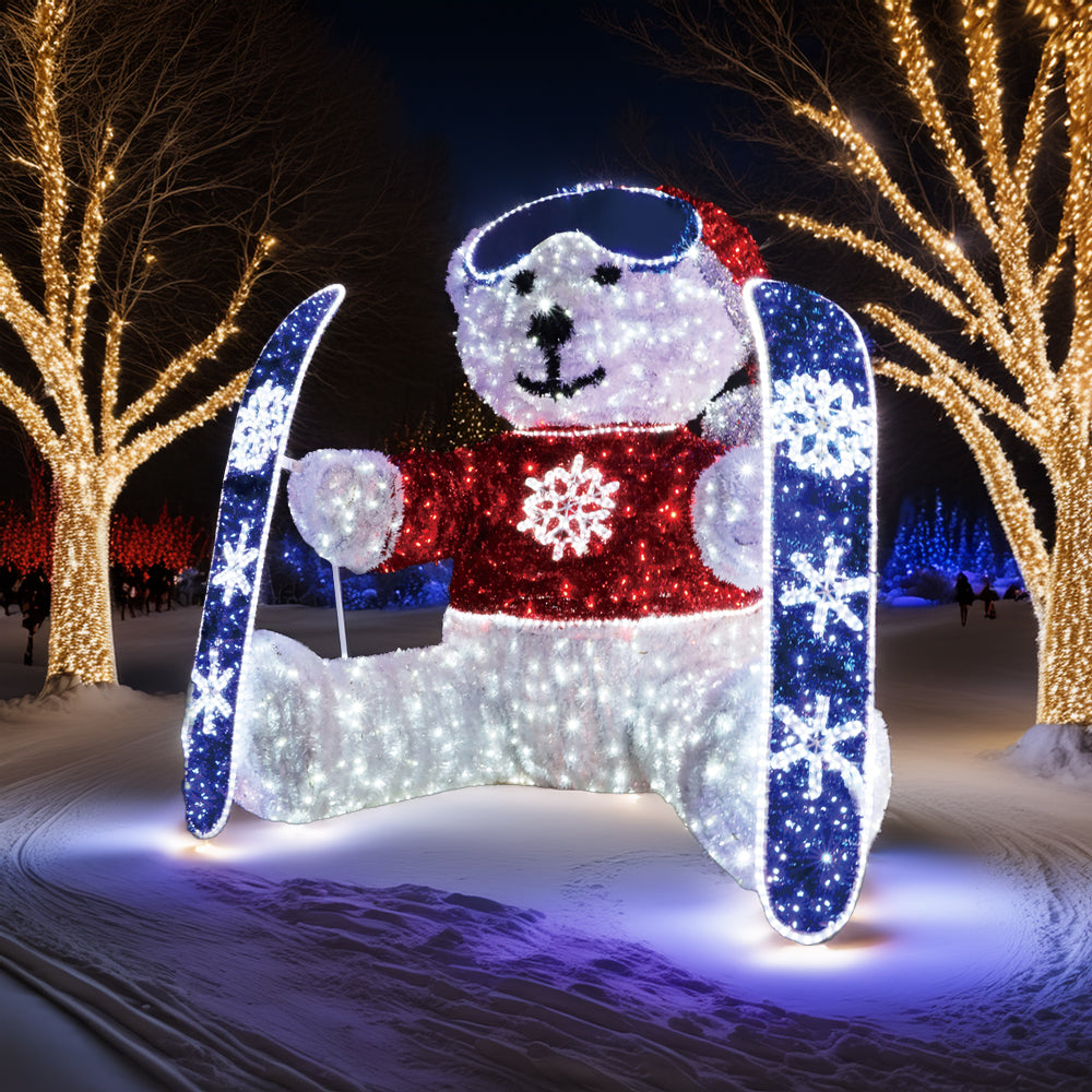 98" LED 3D Sitting Polar Bear W/ Skiis