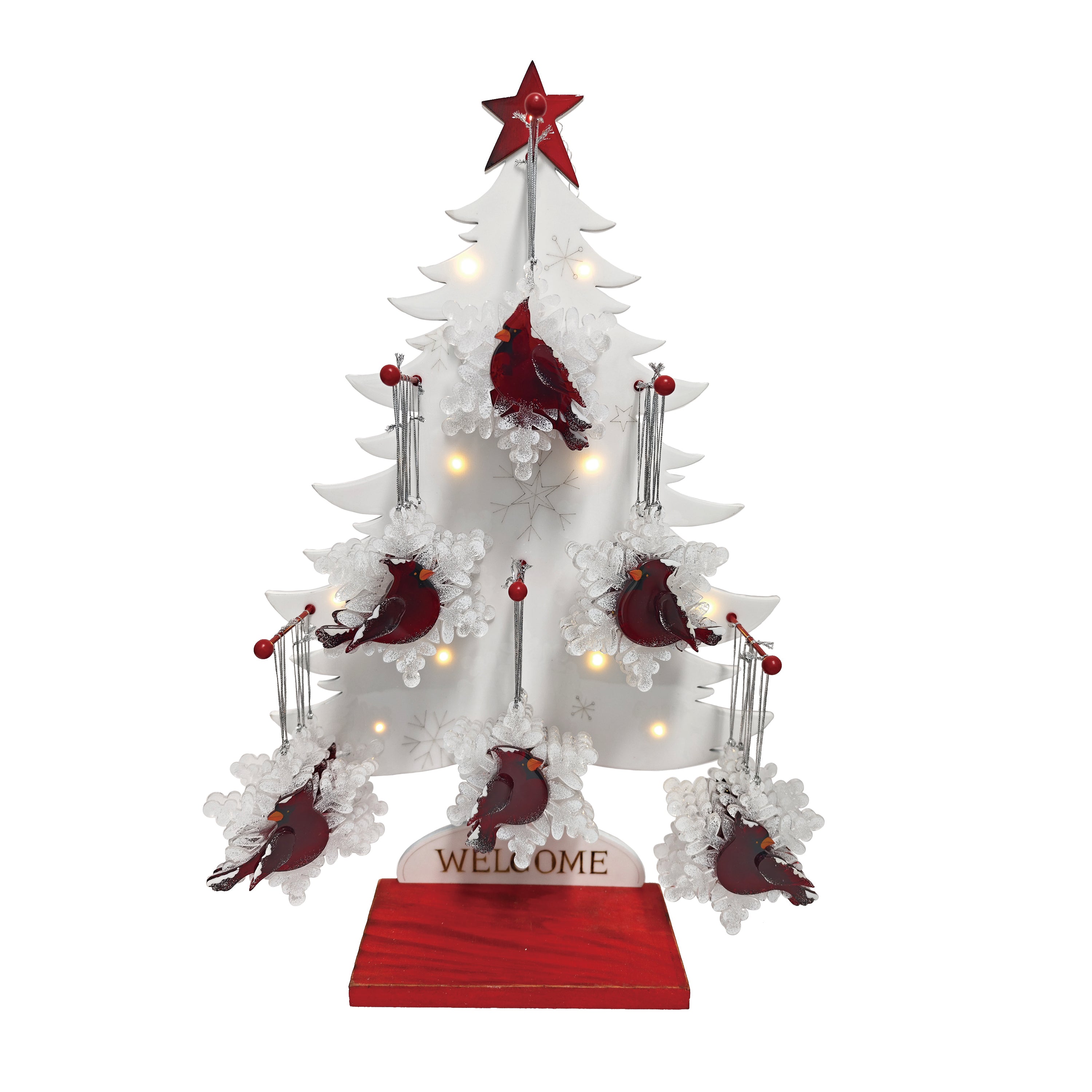 Acrylic Cardinal Snowflake Orns w/ Light Up Plywood Display