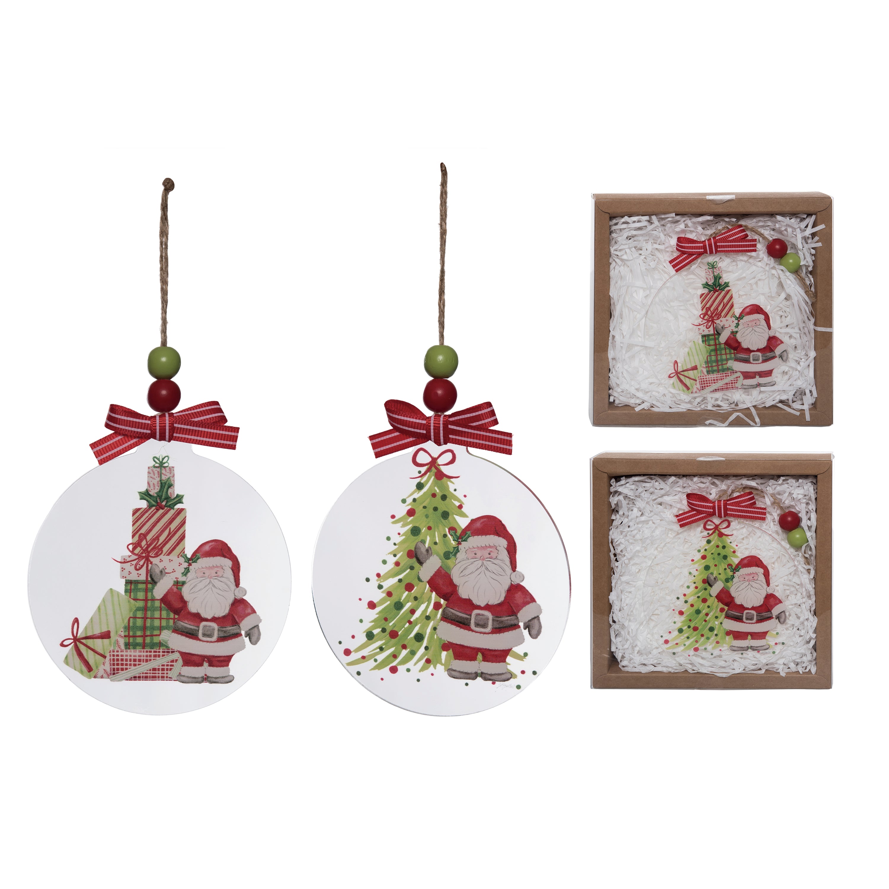 Acrylic Santa Orn in Box 2 Asst