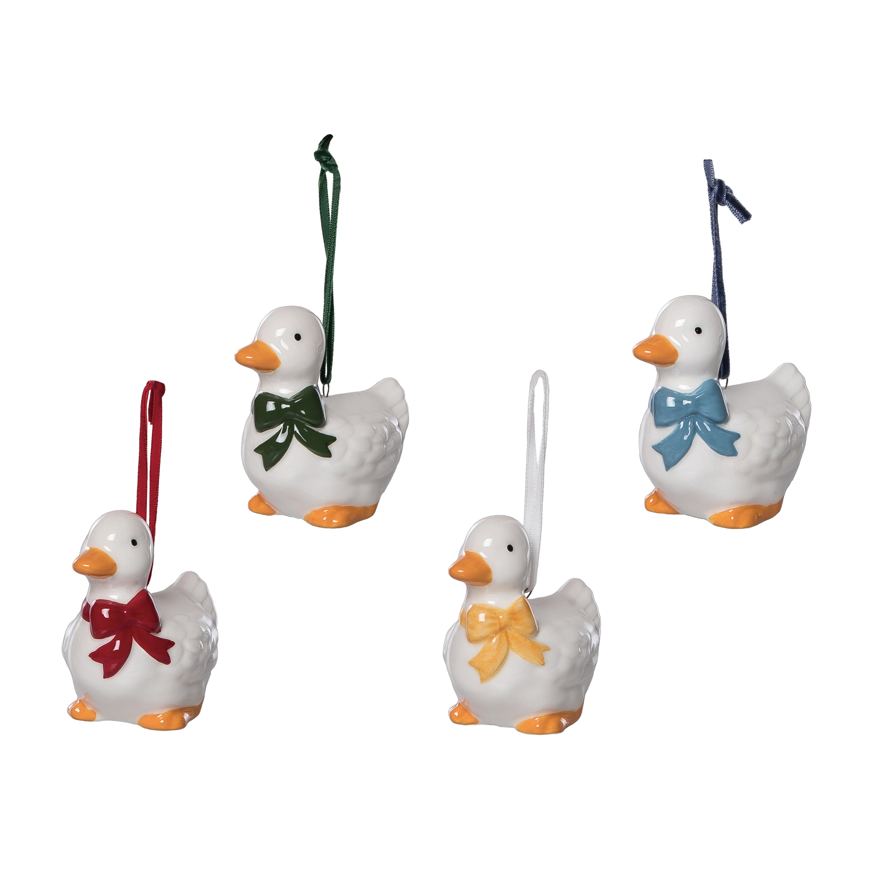 Cer Duck Ornaments w Velvet Hanger 4 Asst