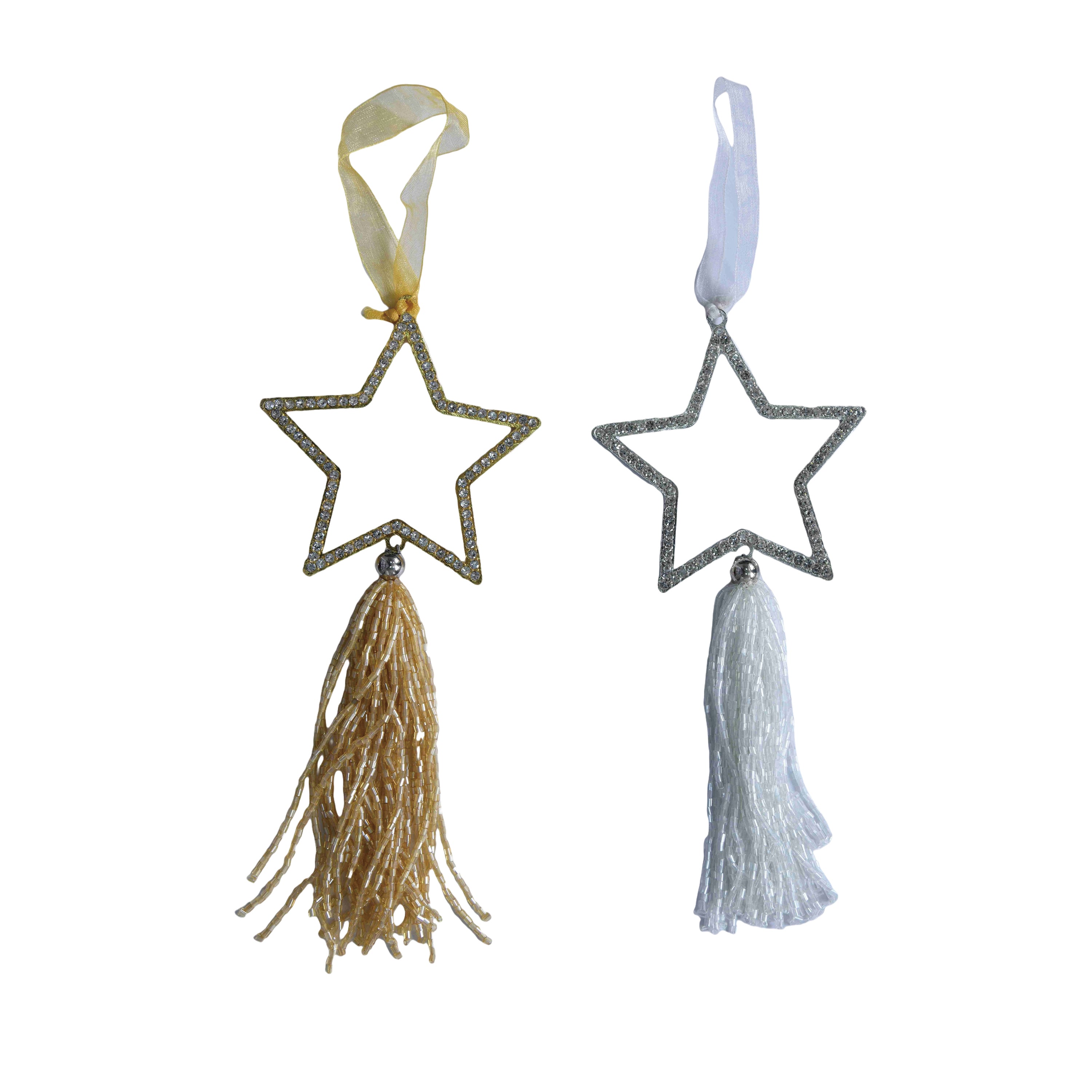 Crystal Star Orn w/Beaded Tassel 2 Asst