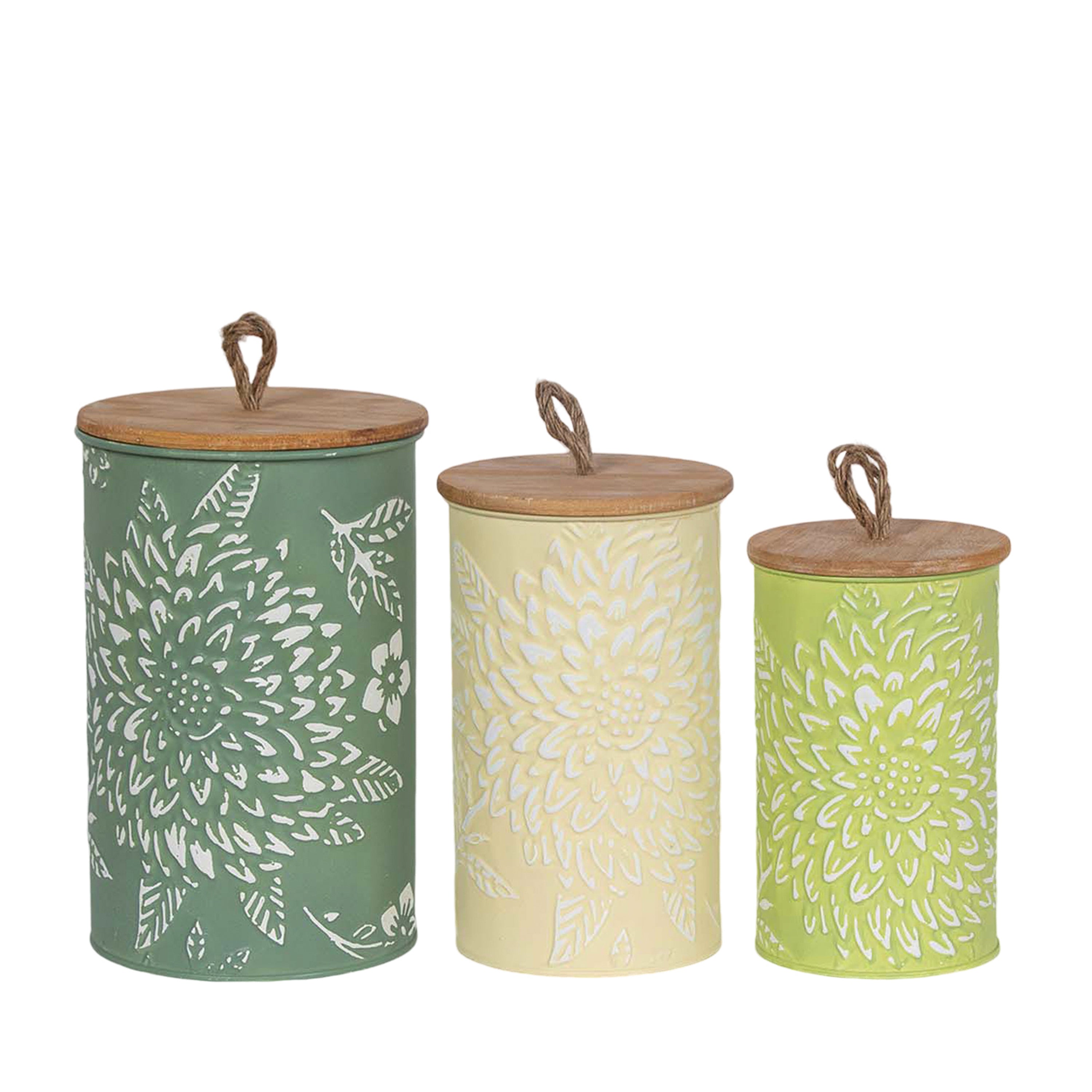 Embossed Canister W/ Wood Top S/3