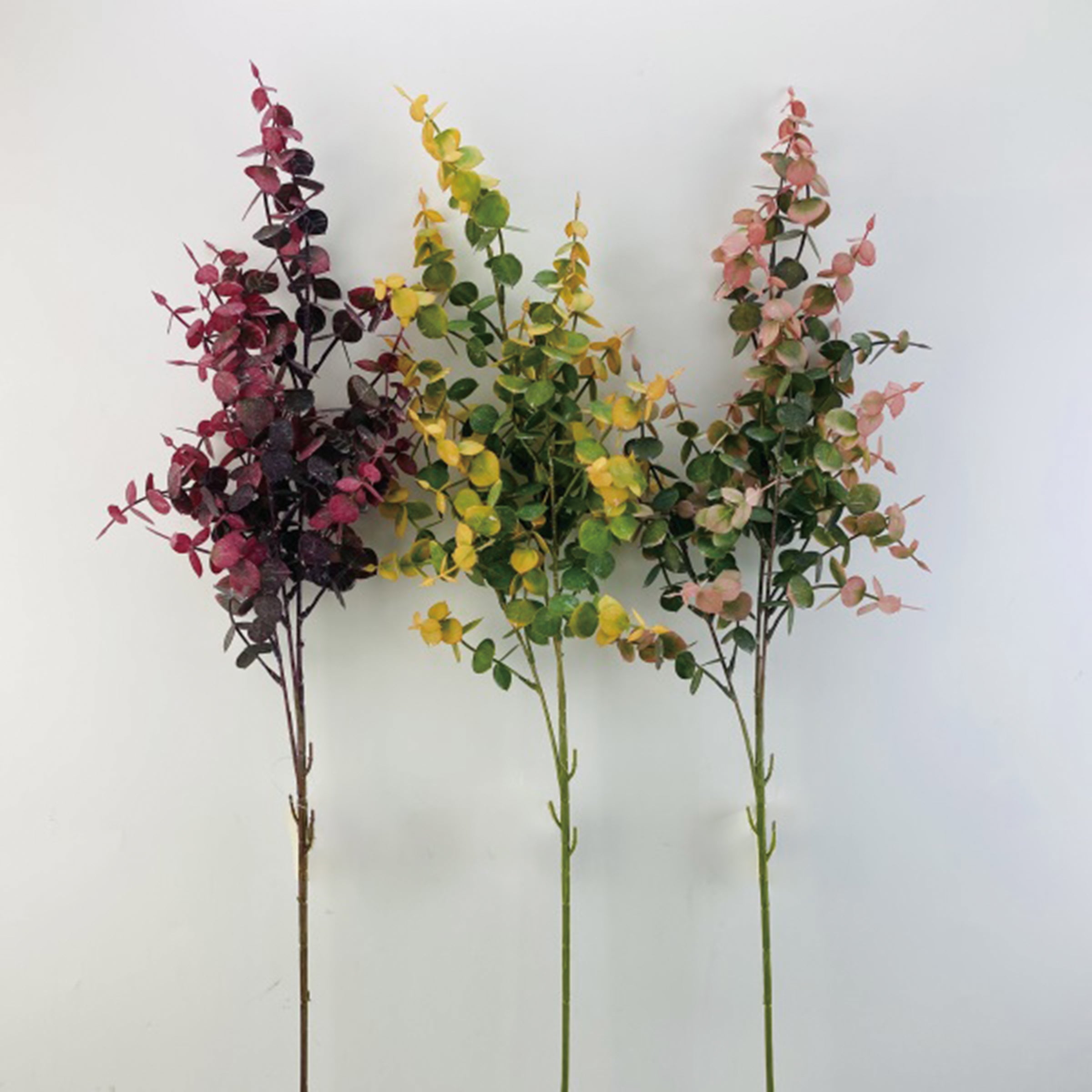 EUCALYPTUS PLASTIC SPRAY (Set of 3) 3 COLORS EQUALLY ASST'D TO INNER BOX : RED/GREEN (#6) YELLOW/GREEN (#4) PEACH/GREEN (#3)