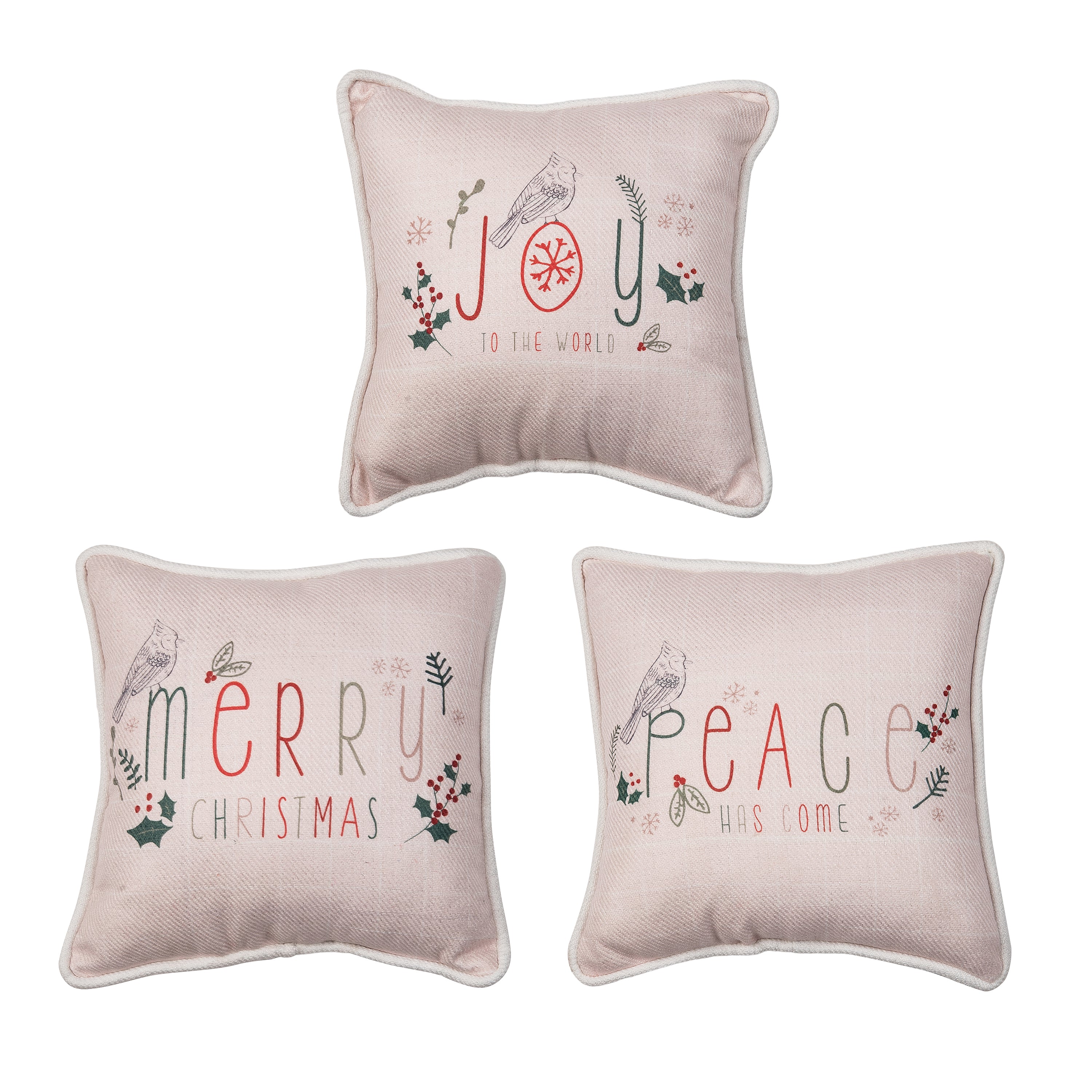 Fabric Mini Cardinal Word Pillow 3 Asst