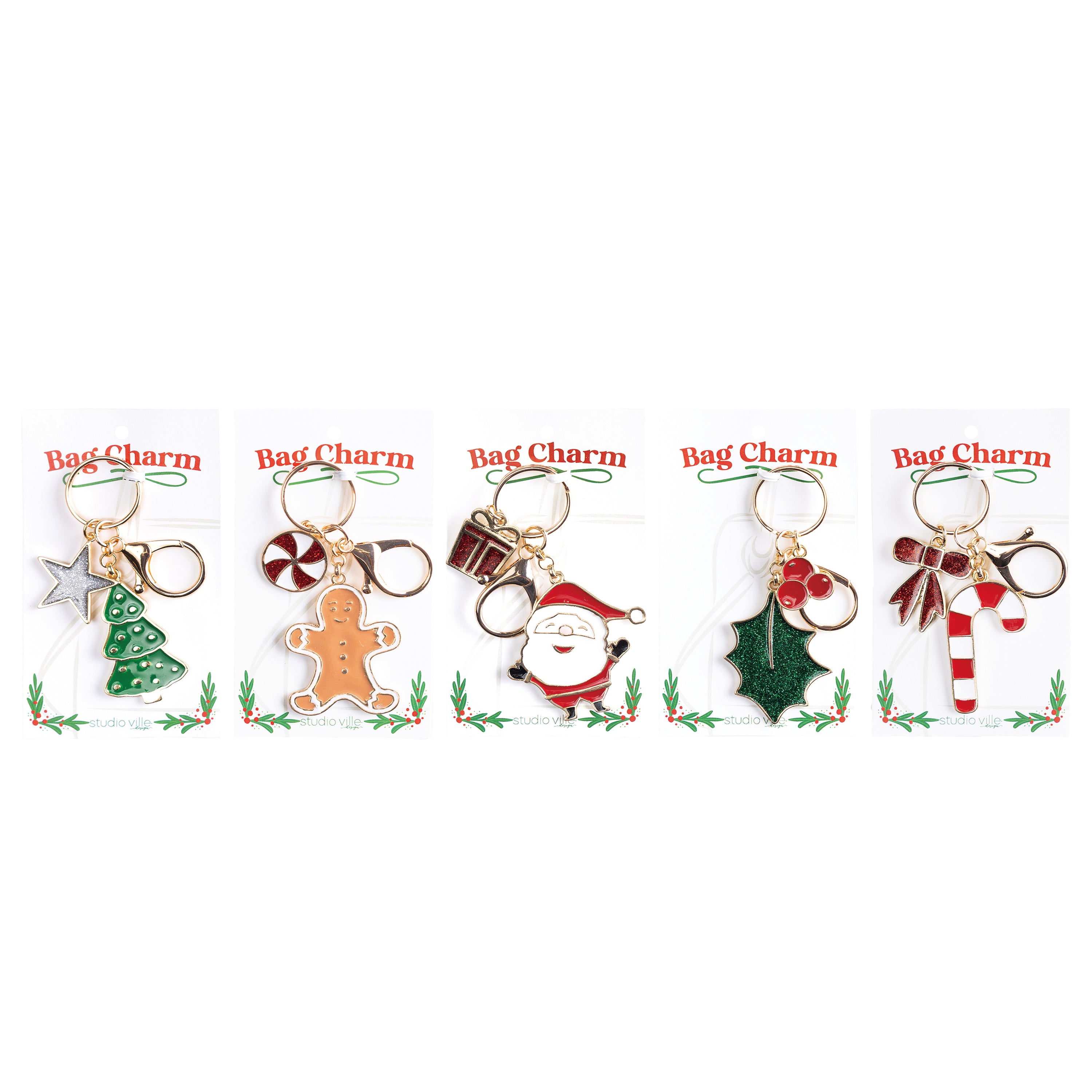 Festive Metal & Enamel Holiday Bag Charm