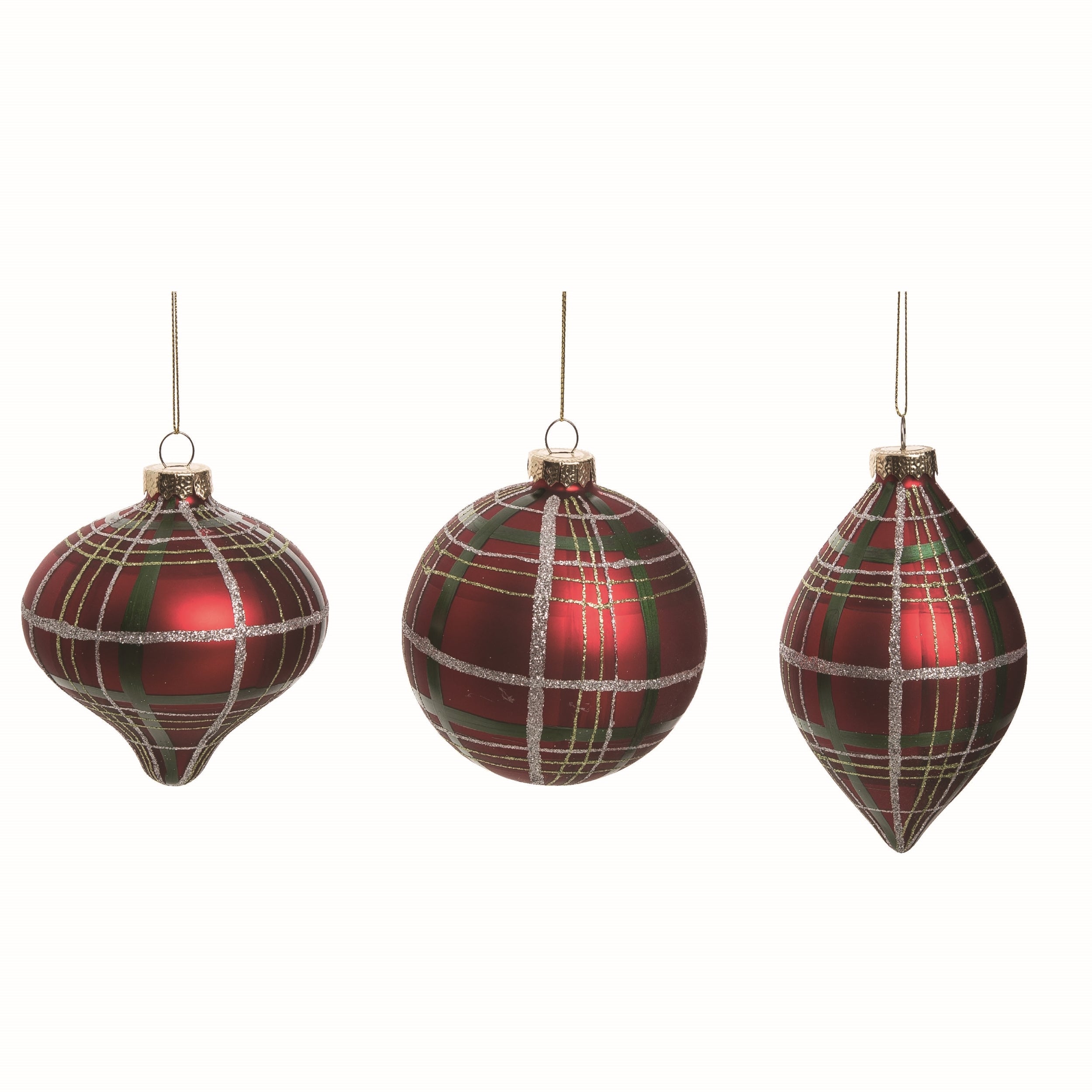 Glass Christmas Plaid Orn 3 Asst