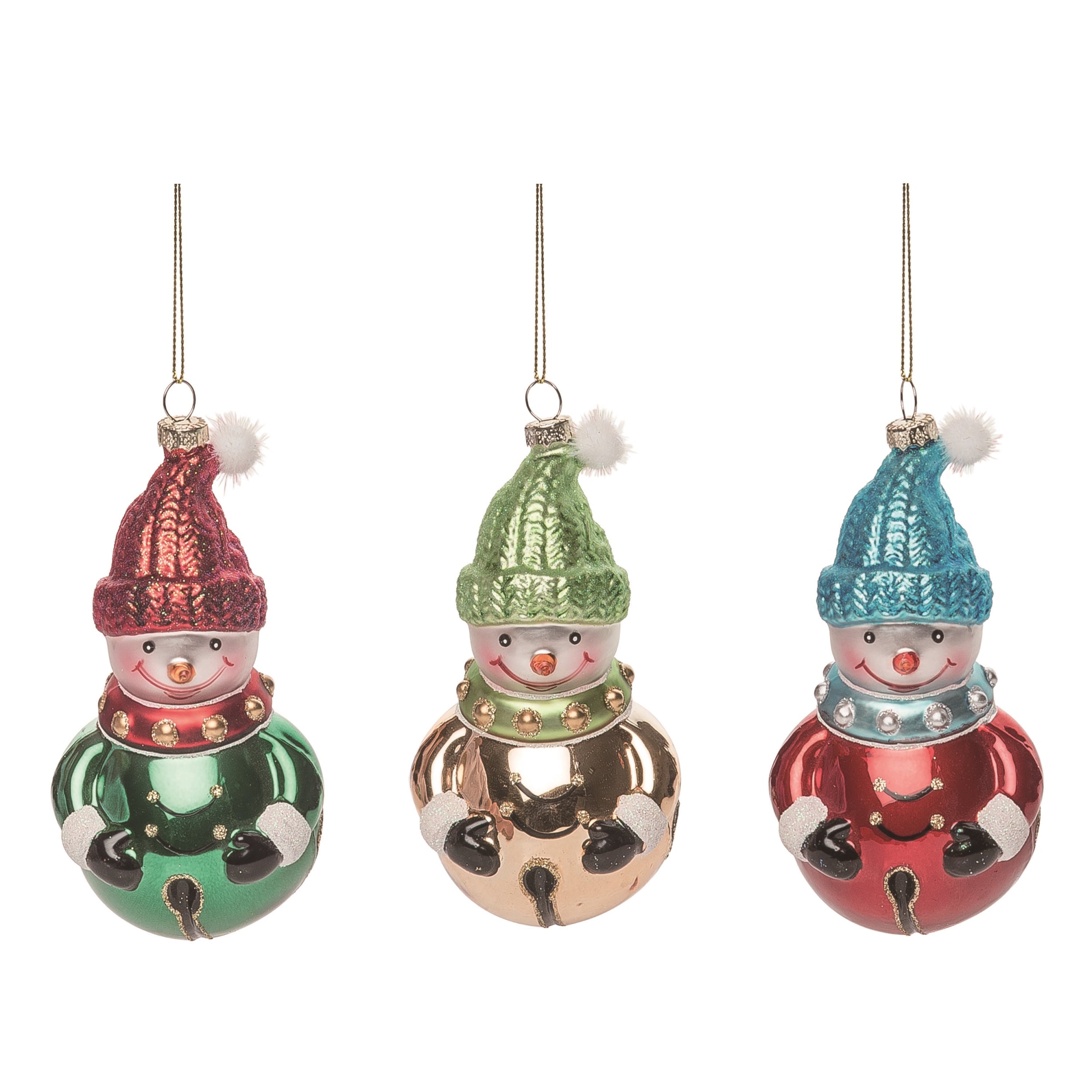 Glass Fun Snowman Orn 3 Asst