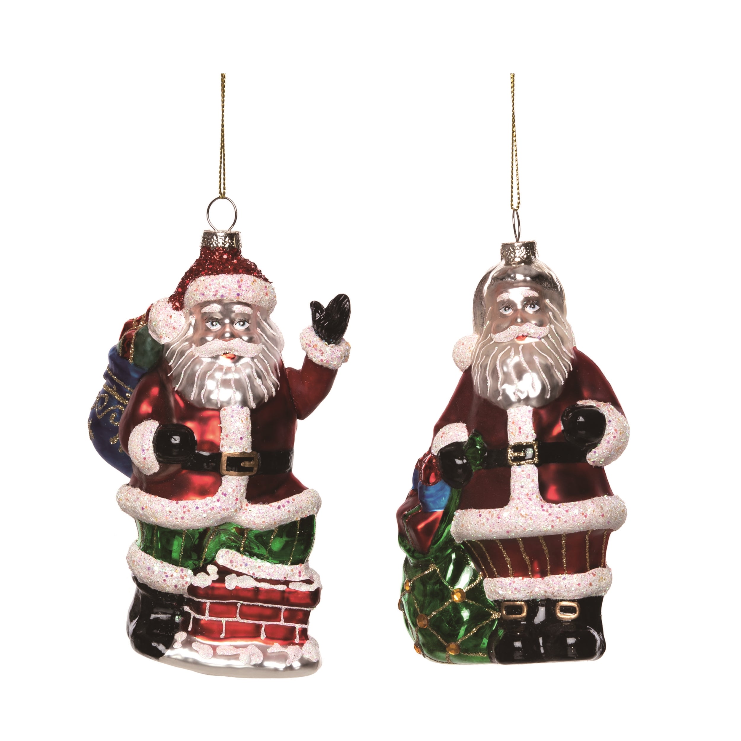 Glass Greeting Santa Orn 2 Asst