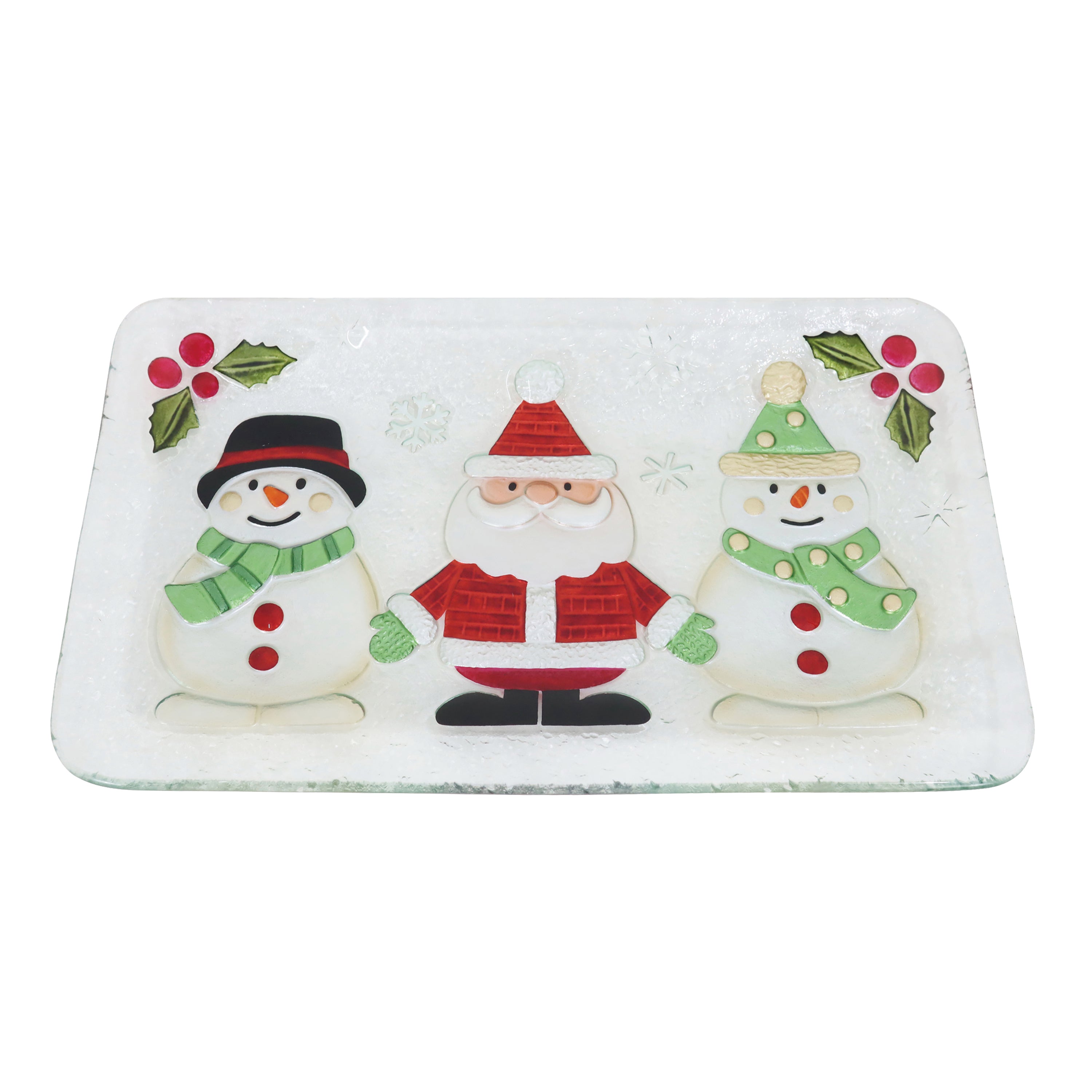 Glass Jolly Santa Snowmen Platter