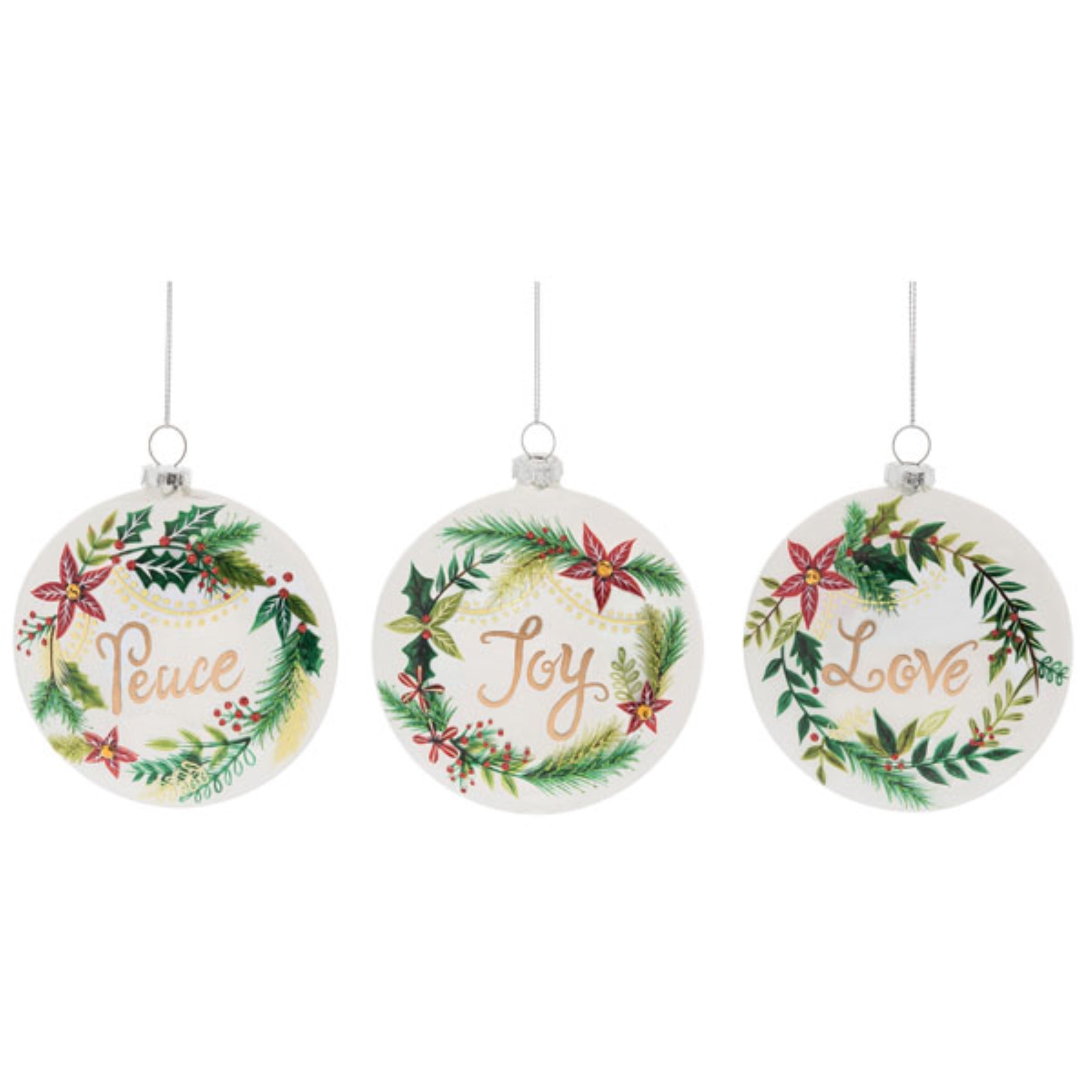 Glass Love/Joy/Peace Wreath Orn 3 Asst