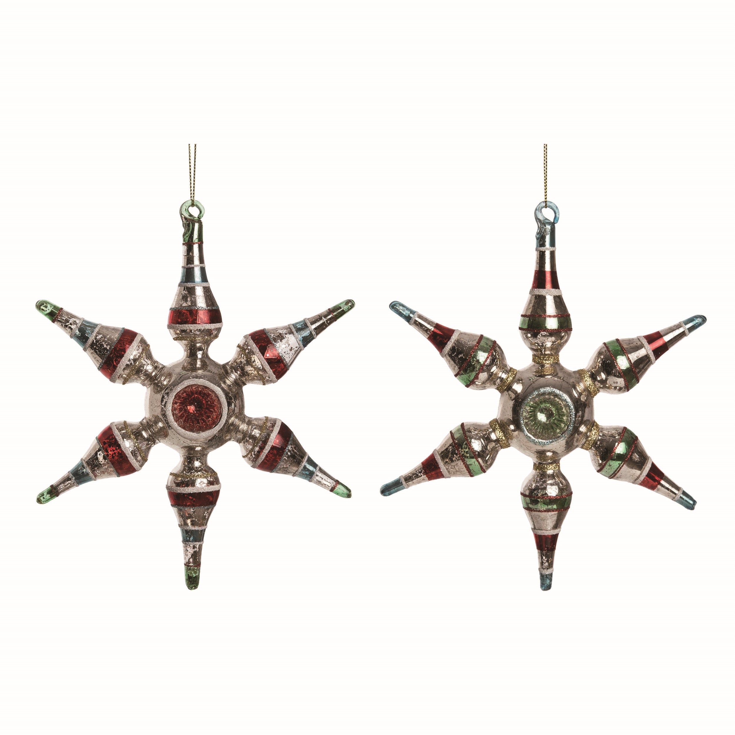 Glass Retro Star Orn 2 Asst