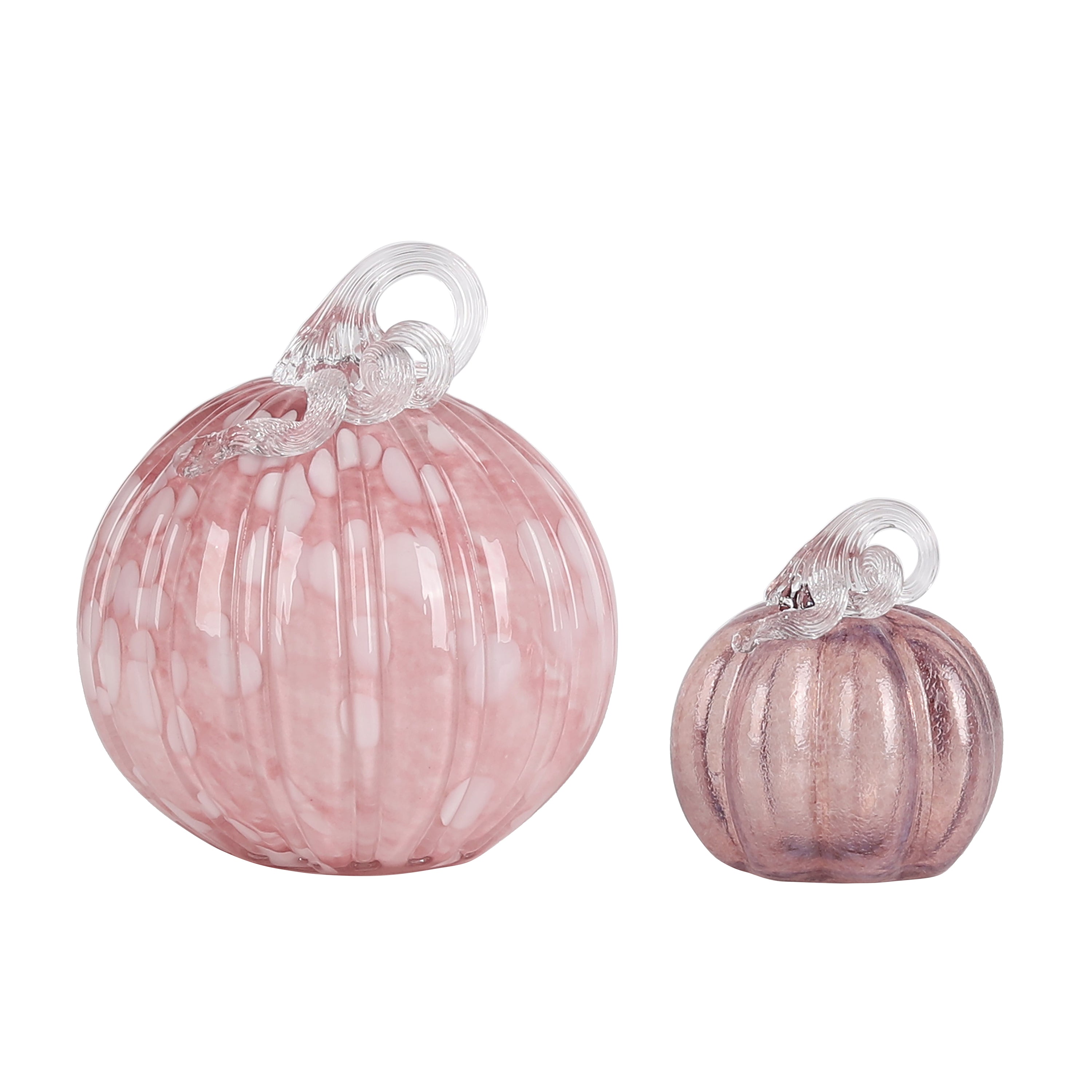 Glass Translucent Pink Pumpkins S/2