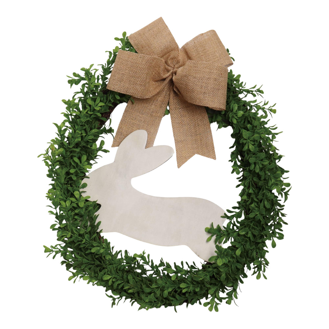 Greenery Wreath With Natural Bunny And bow