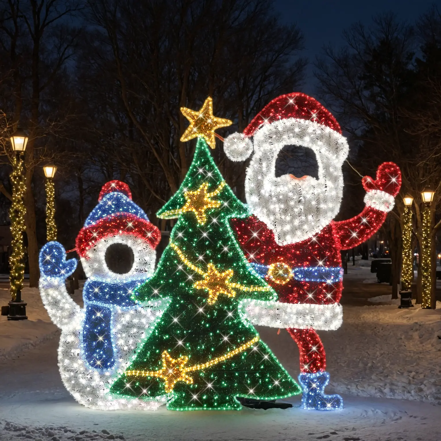 LED 2D 88" P Op Santa/Reindeer With Tree