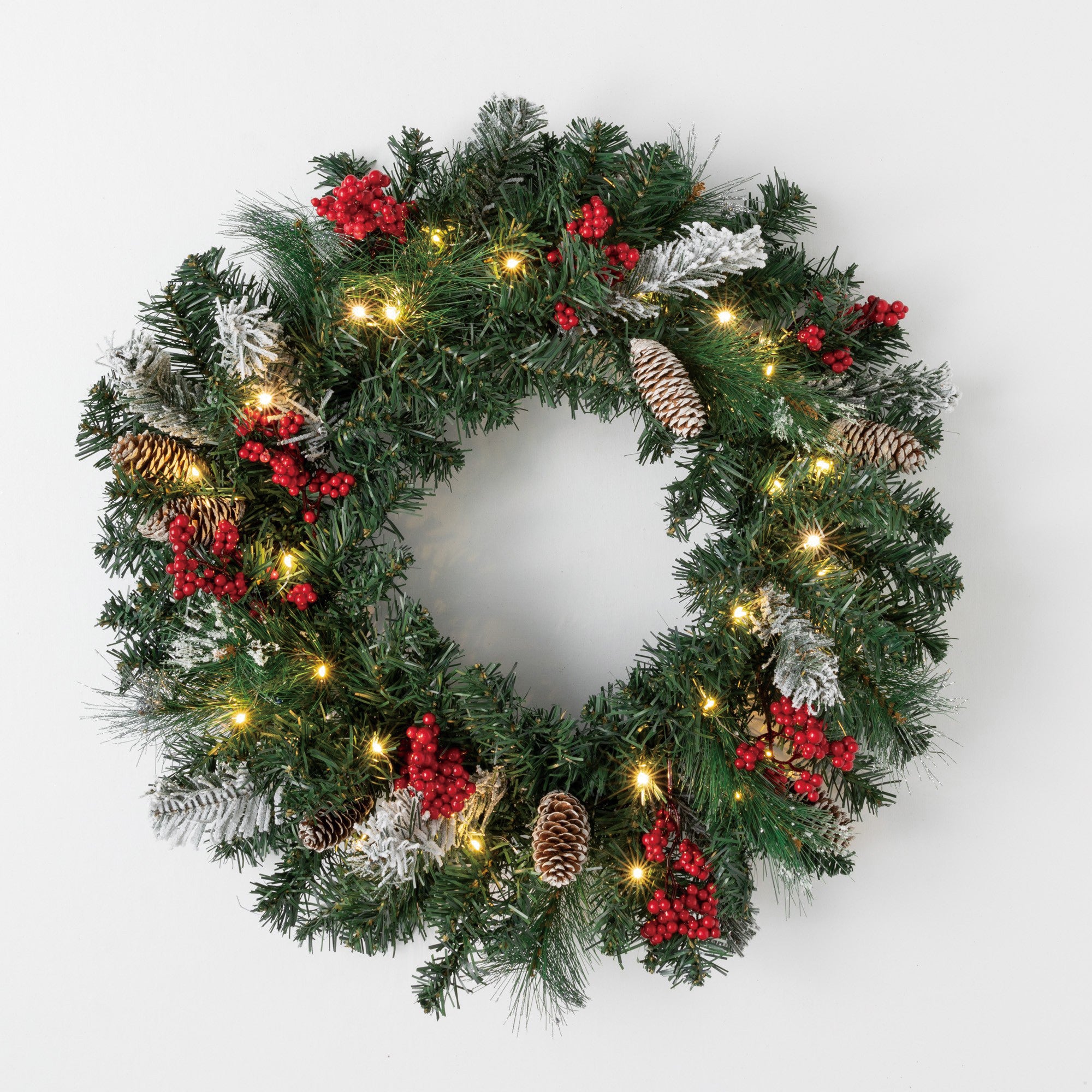 LED PINE/CONE/BERRY WREATH
