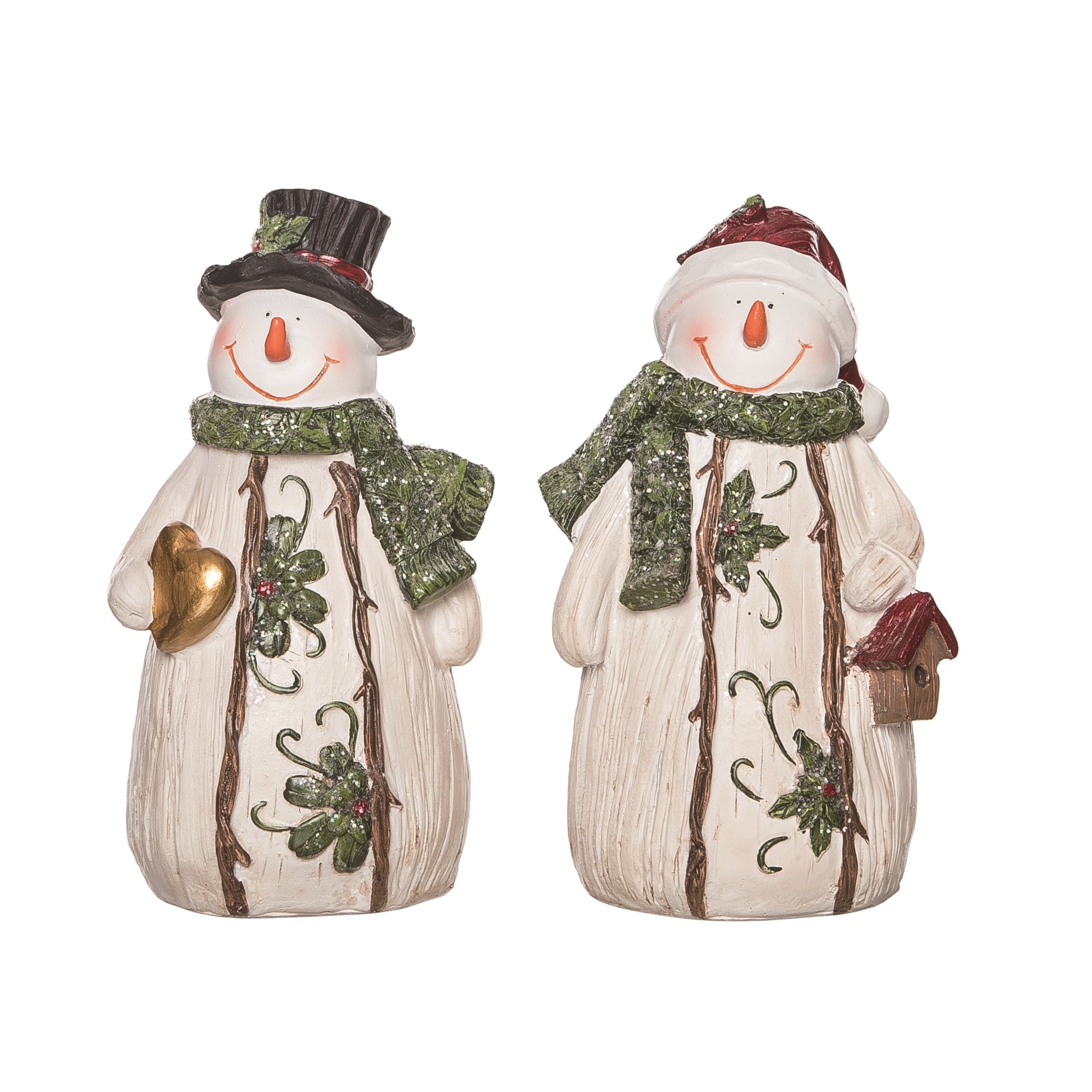 Lg Res Wood Carved Snowman Fig 2 Asst