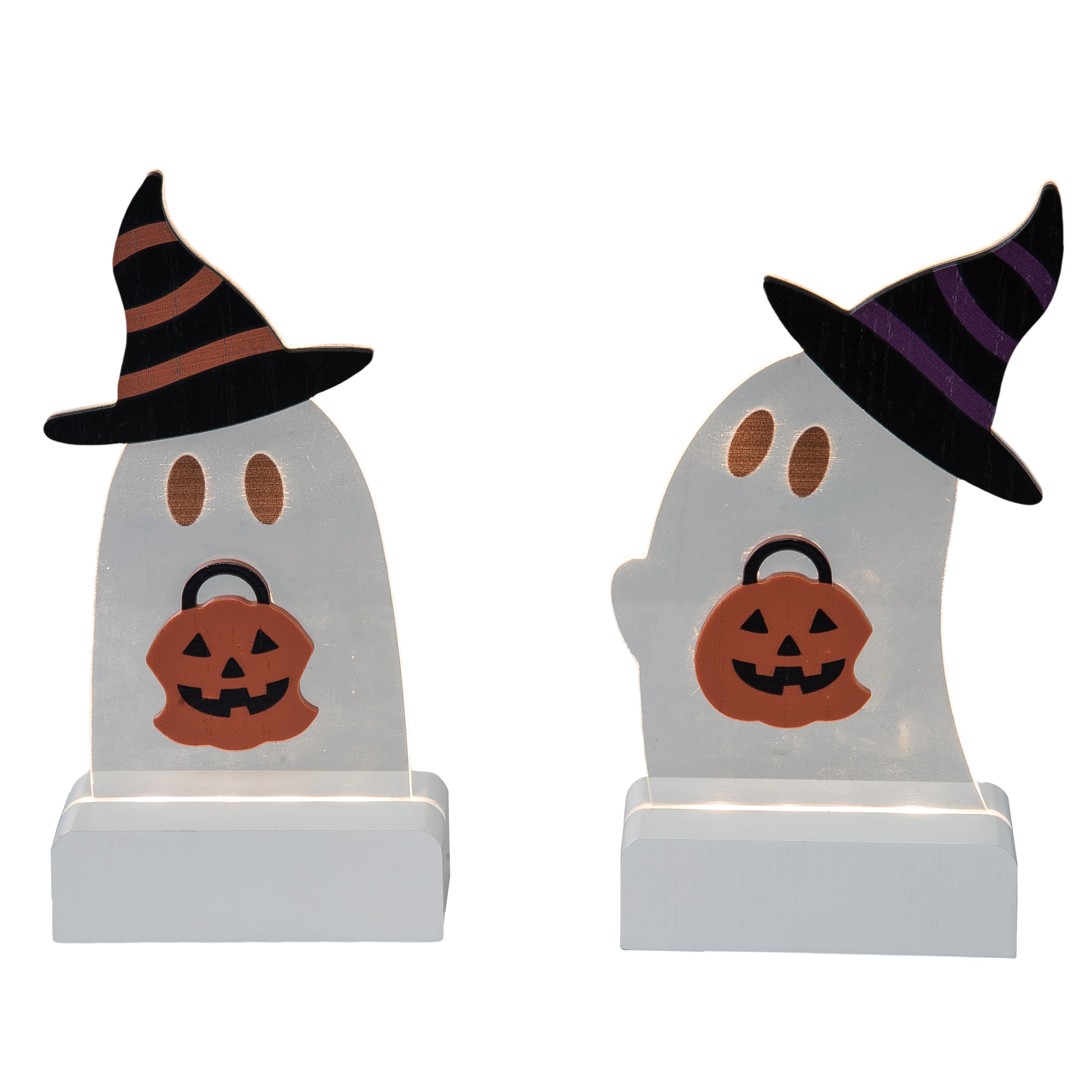 Light Up Acrylic MDF Ghosts w/Hat Decor 2 Asst