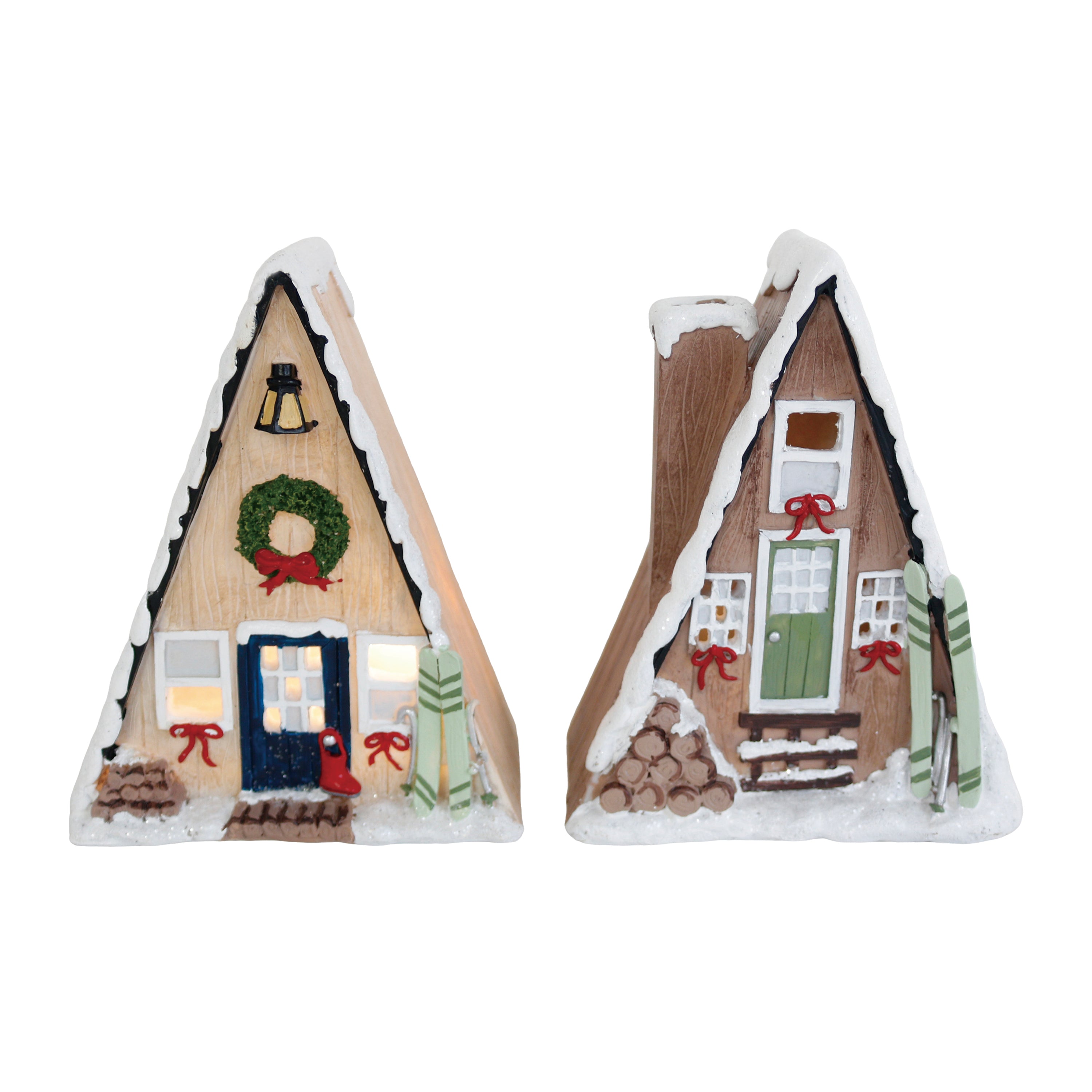 Light Up Resin Snow Lodge 2 Asst