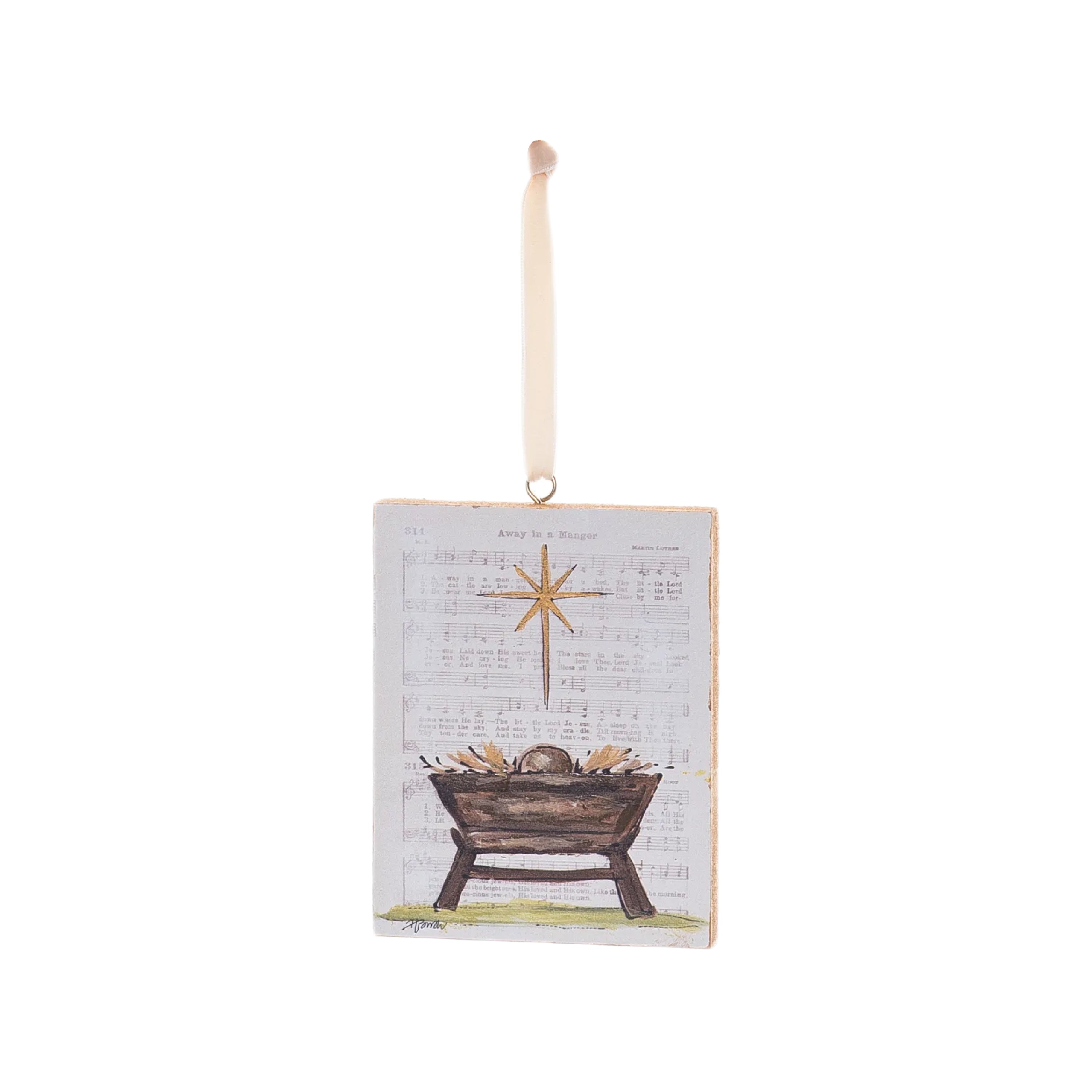 MDF Hand Painted Manger Orn
