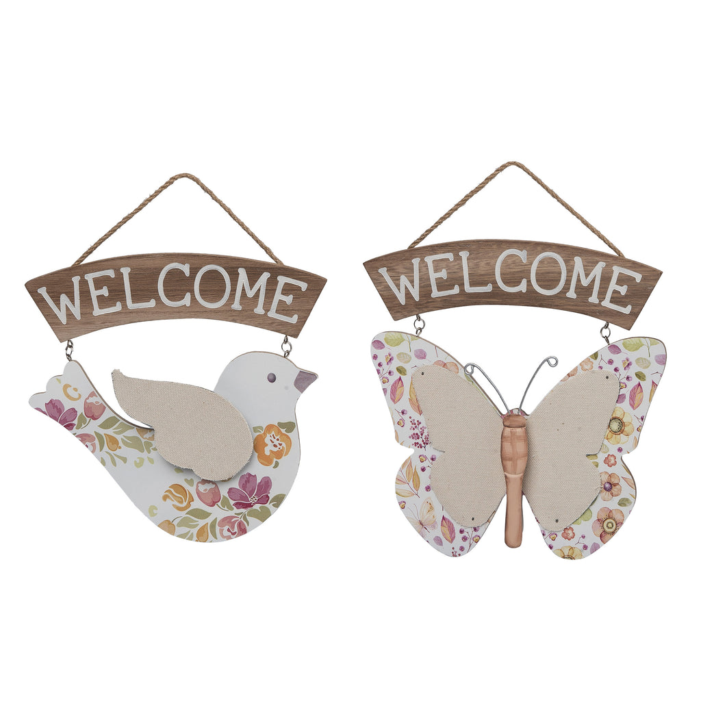 MDF Welcome Bird & Butterfly Decor Sign 2 Asst