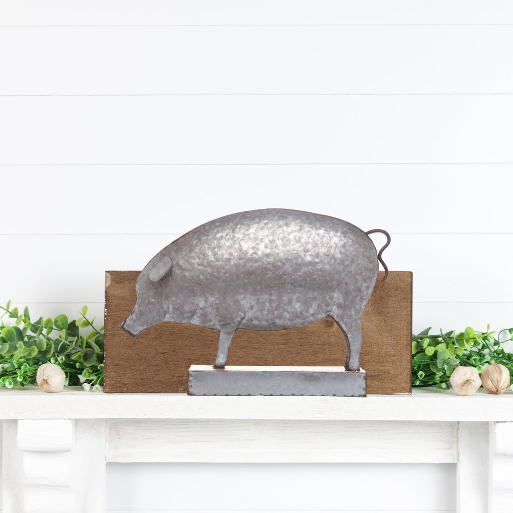 Metal Galvanized Pig Decor