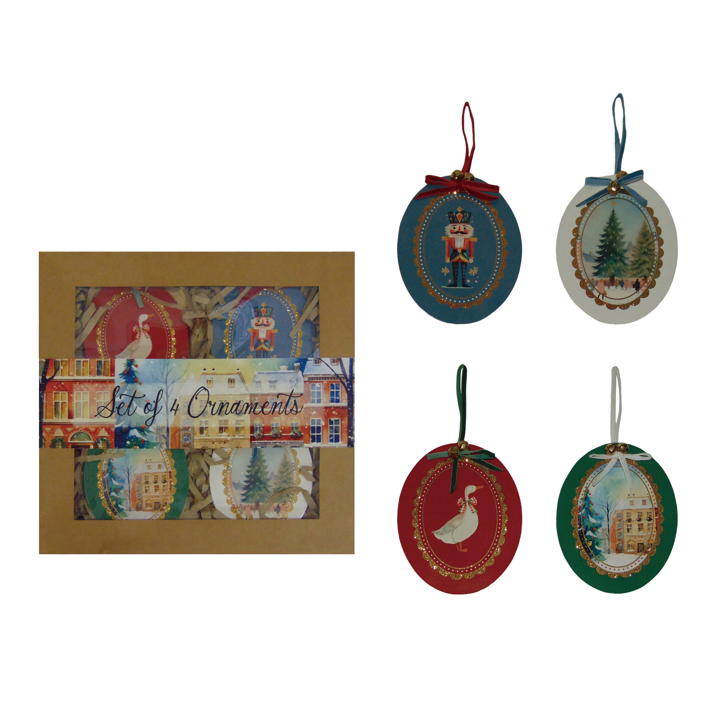 Metal Noel Ornaments S/4 in Pkg
