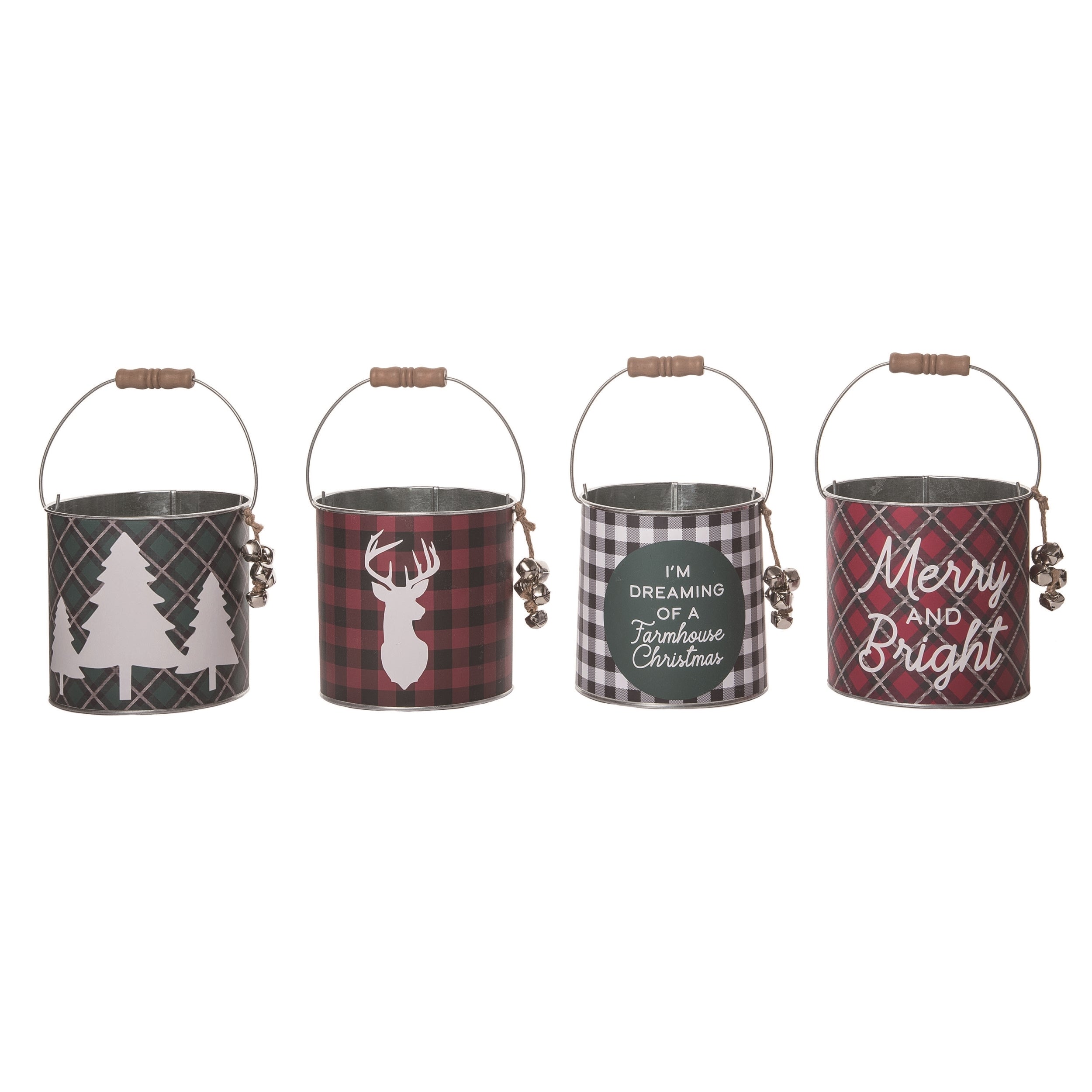 Metal Plaid Bucket w/Handle 4 Asst