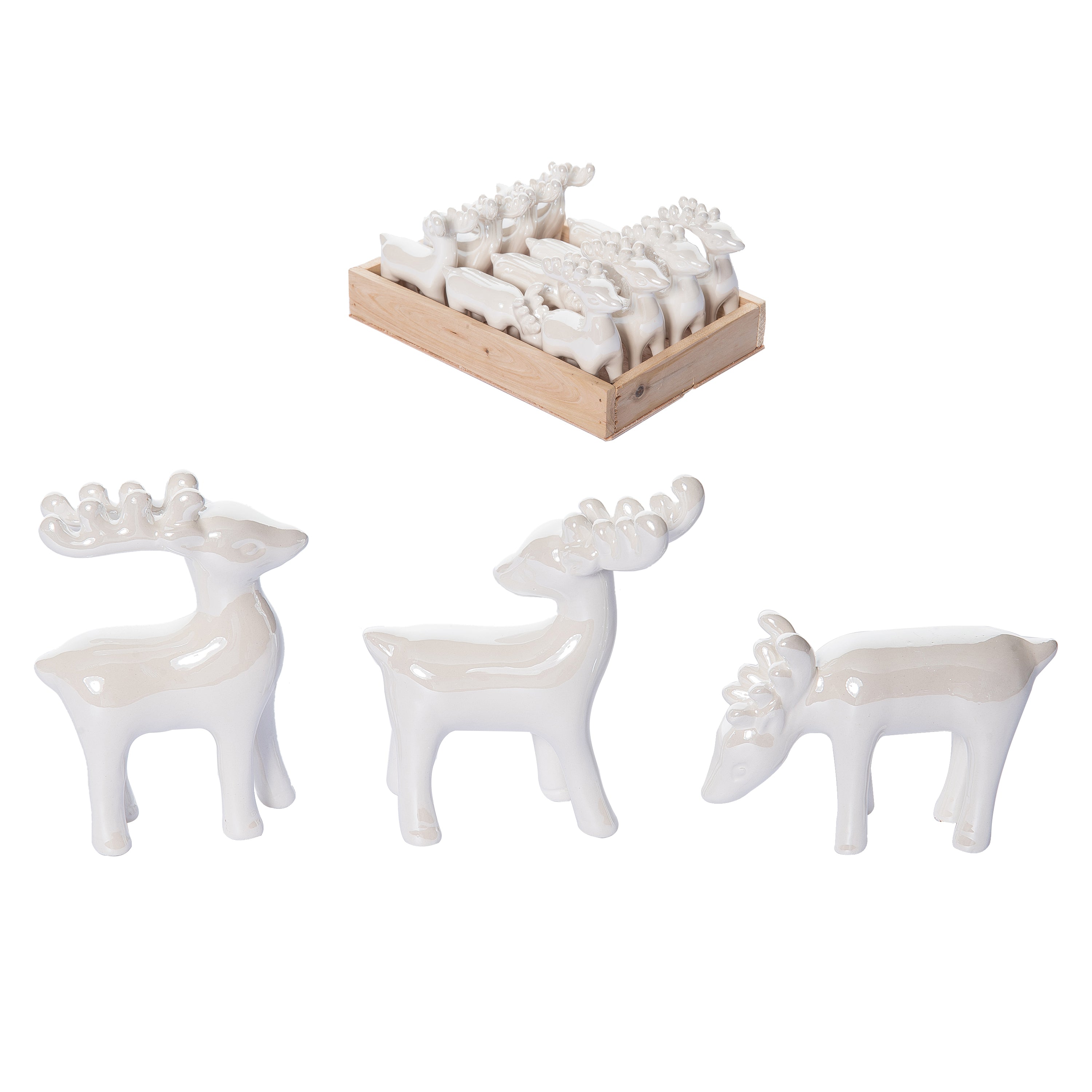 Mini Dol Elegant Reindeer Fig S/12 In Wood Crate