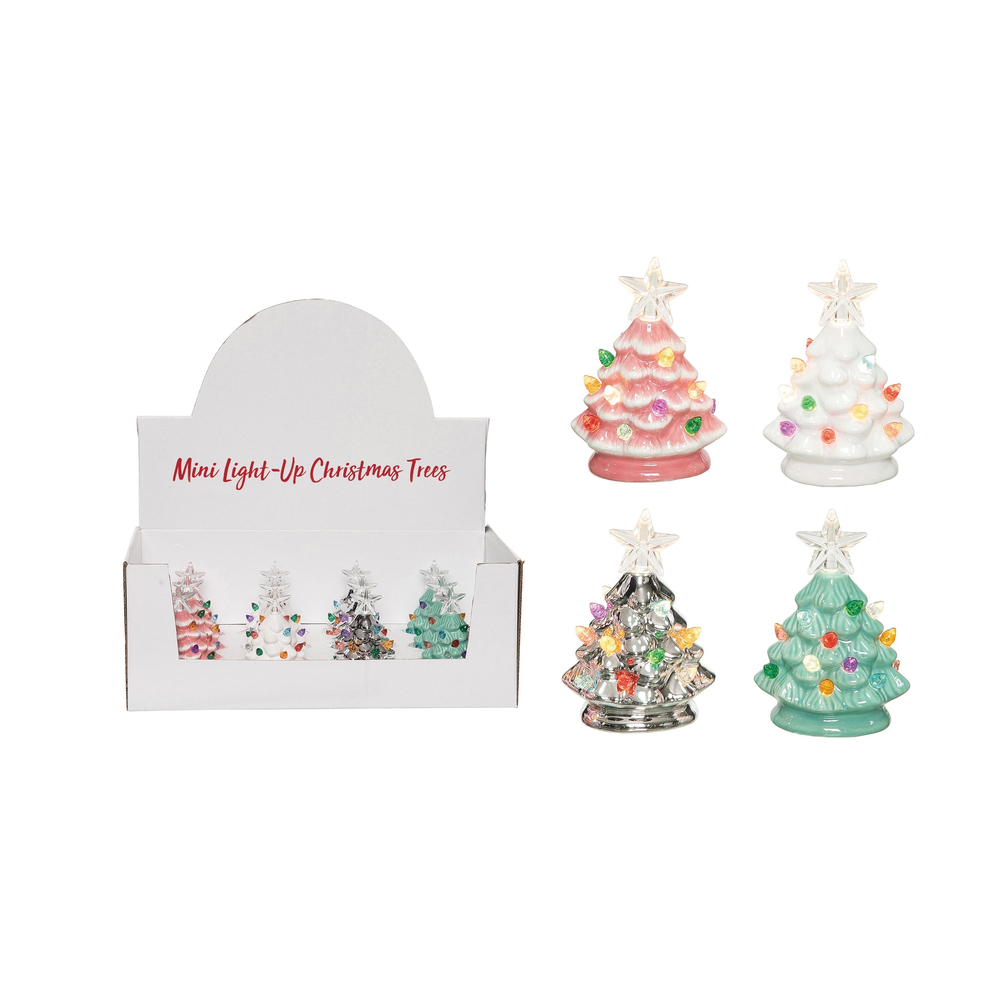 Mini Light Up Dol Pink Retro Cmas Tree S/12 In PDQ